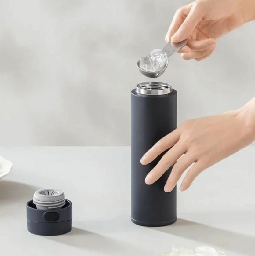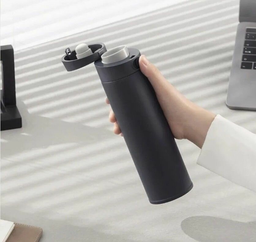 Термос 480 мл с автоматическим замком Xiaomi Mijia Thermos Cup 2 Lid Version (MJTGBO1PL) Цвет: черный с синим оттенком