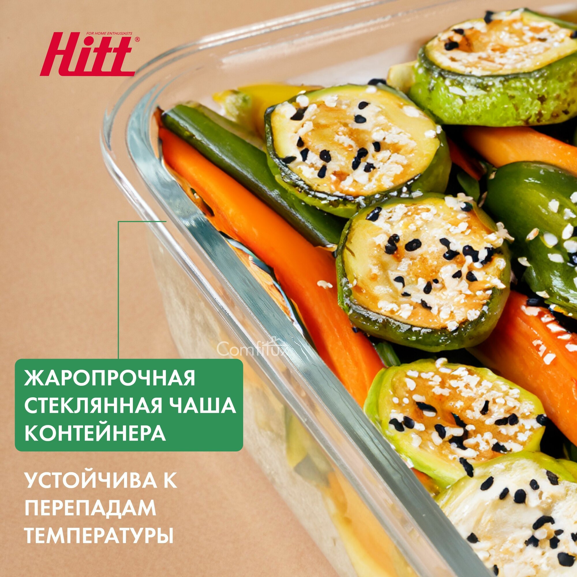 Контейнер для хранения продуктов 370 мл Hitt, герметичный, стеклянный, подходит для запекания