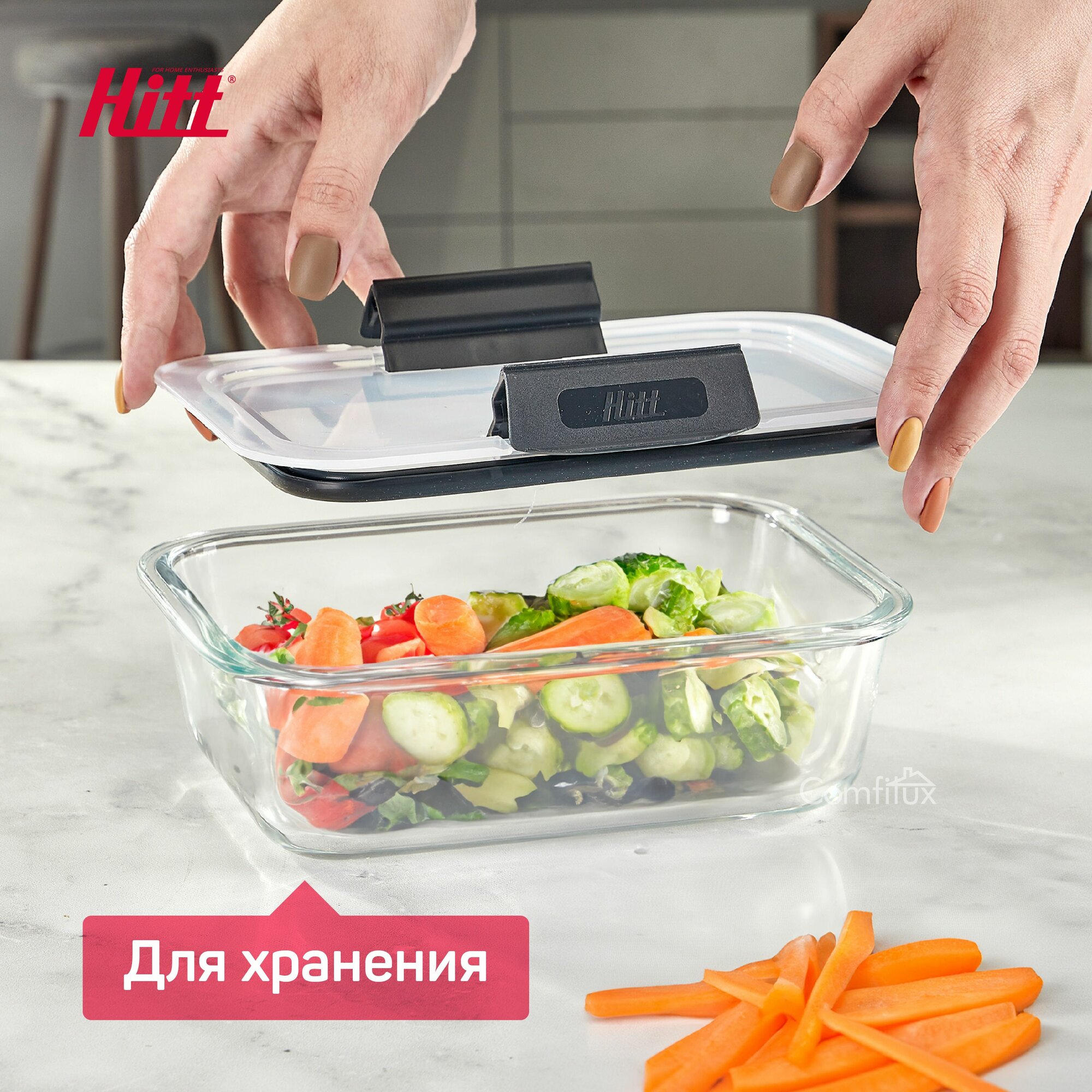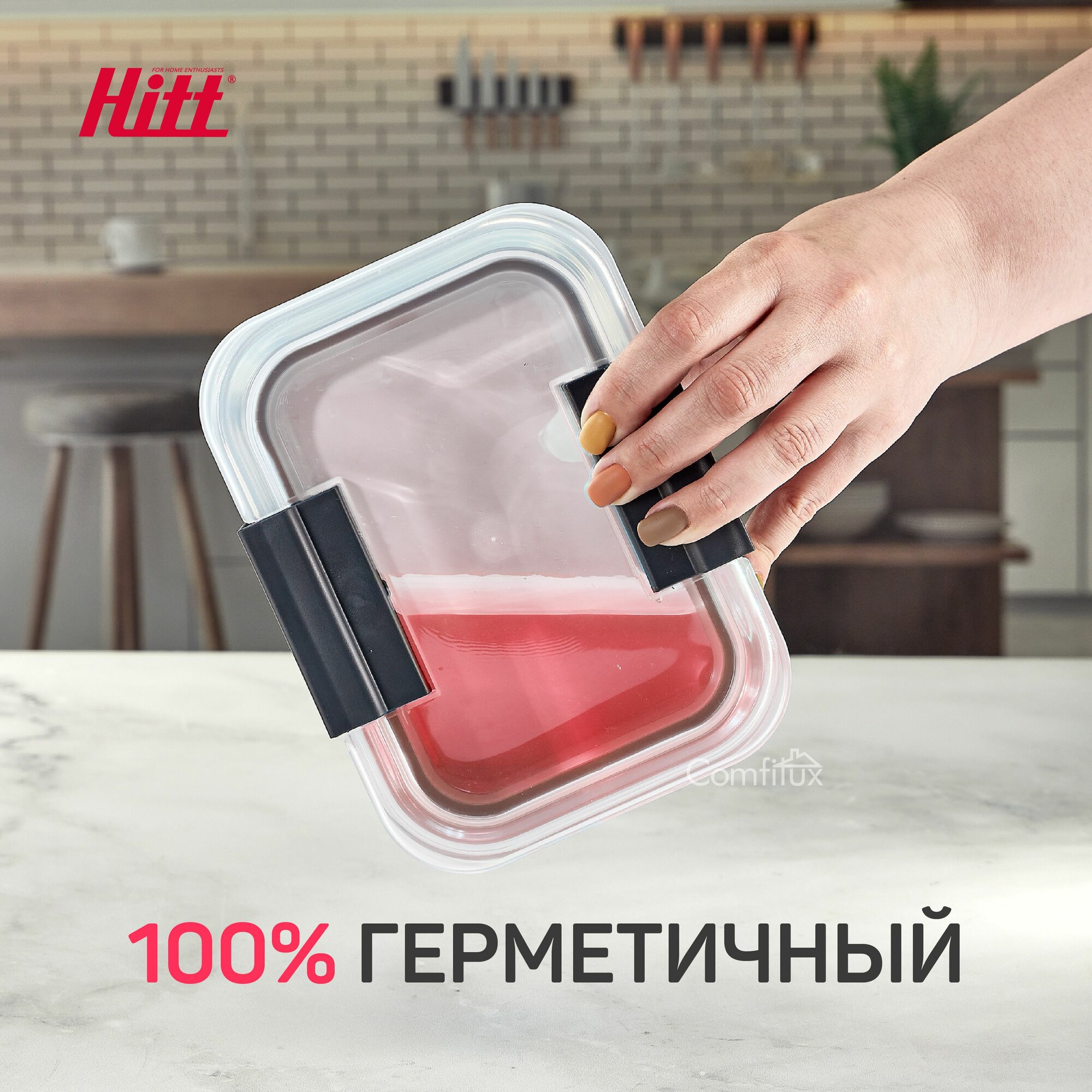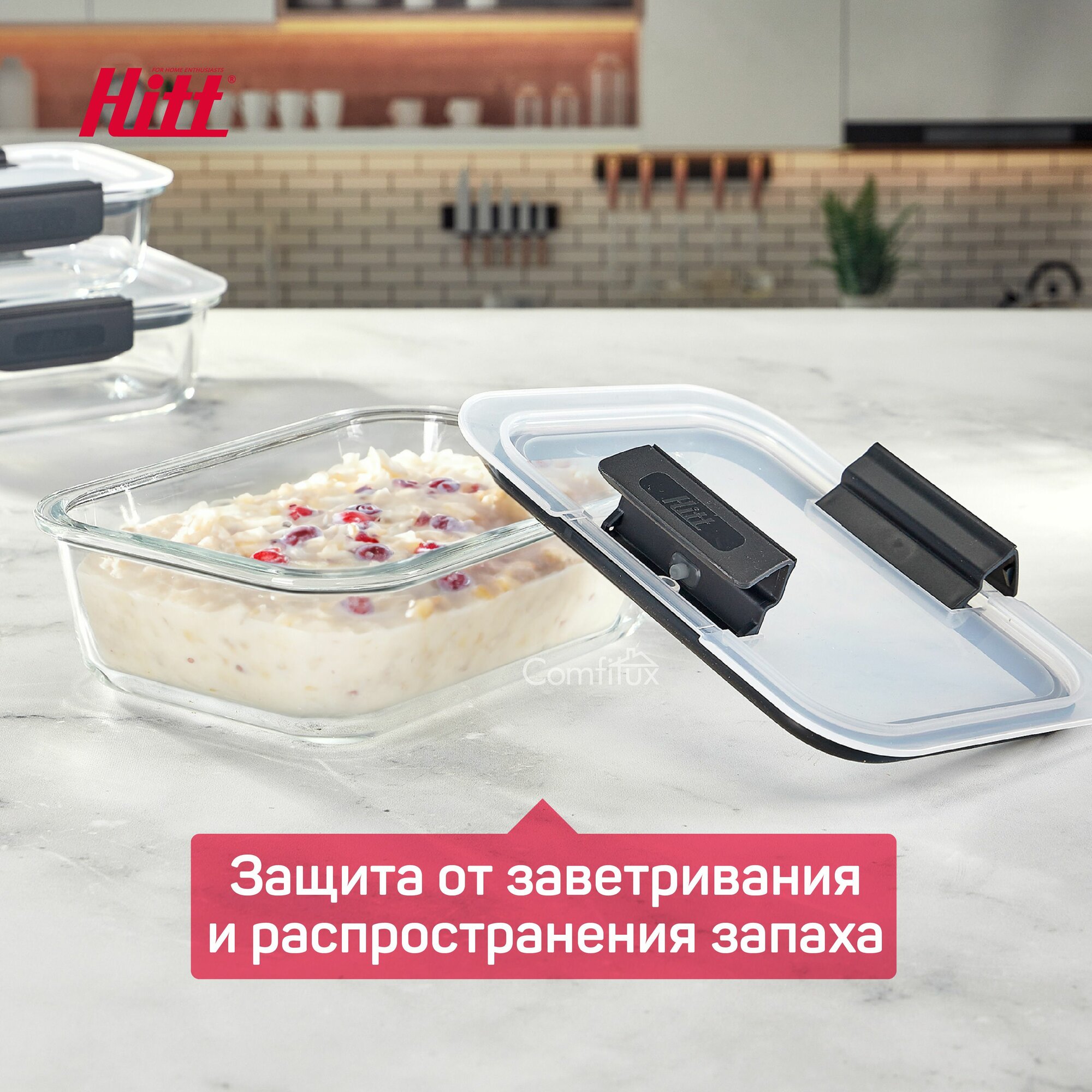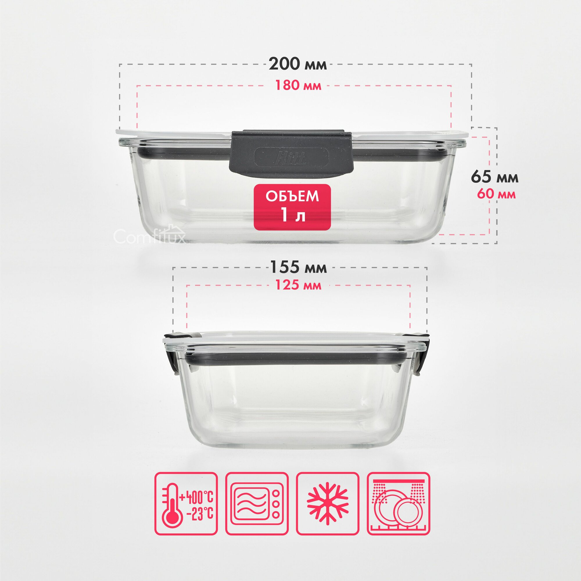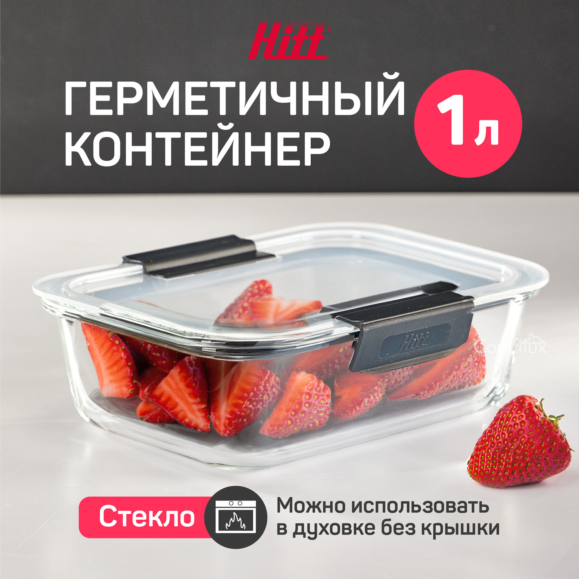 Контейнер для еды Hitt стеклянный, жаропрочный с крышкой, 1 литр интересное: