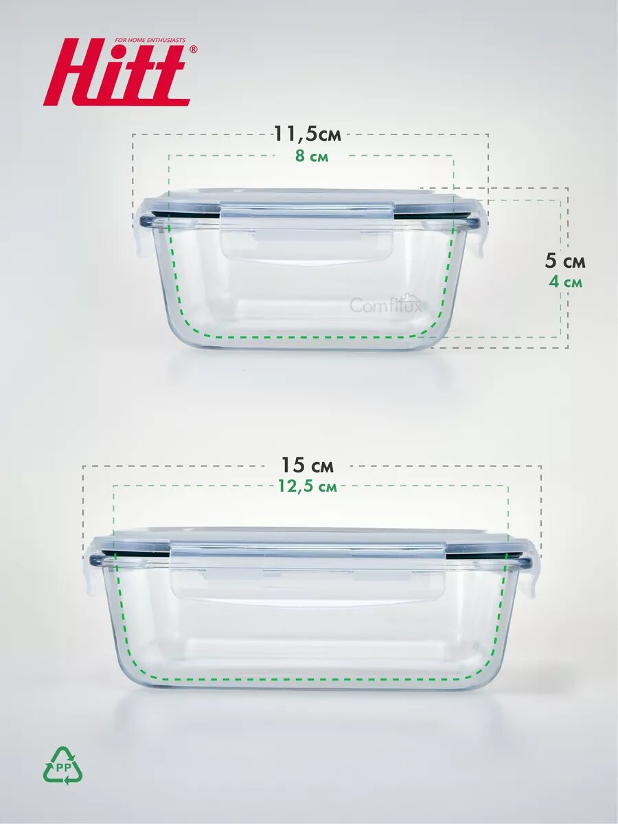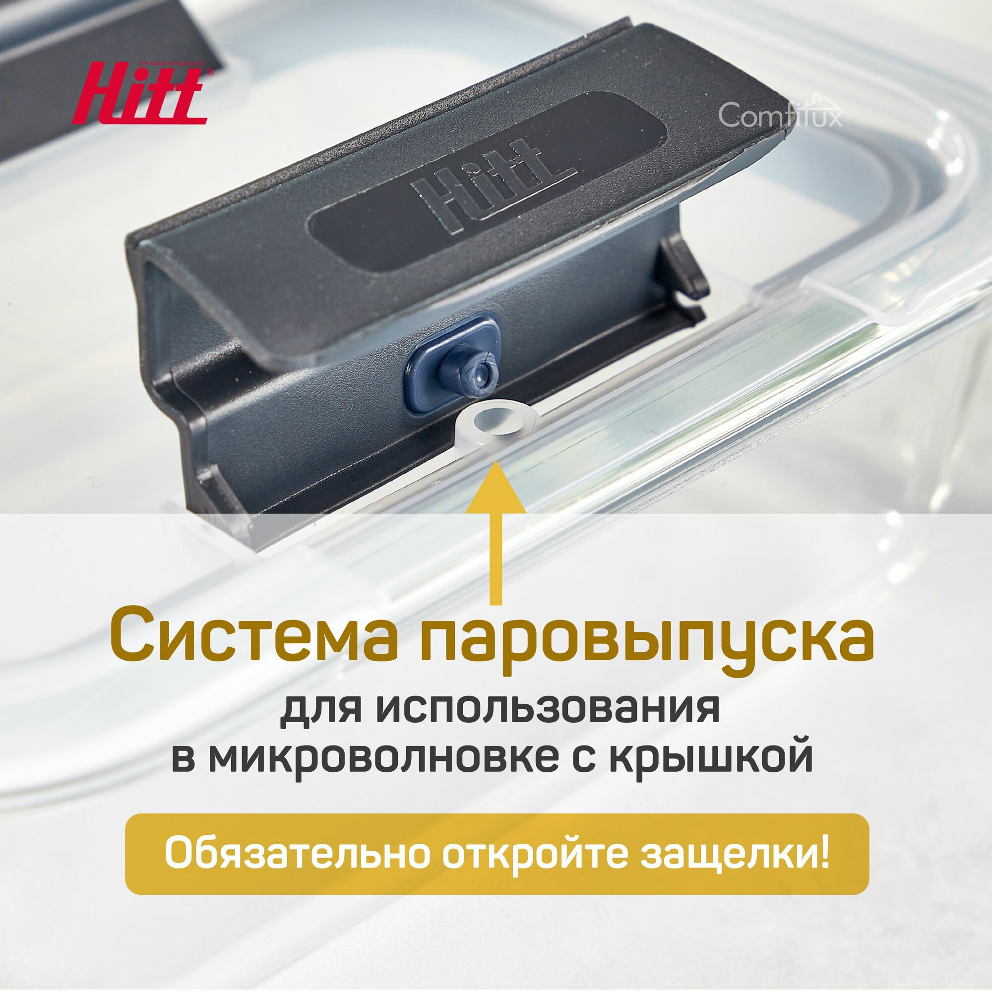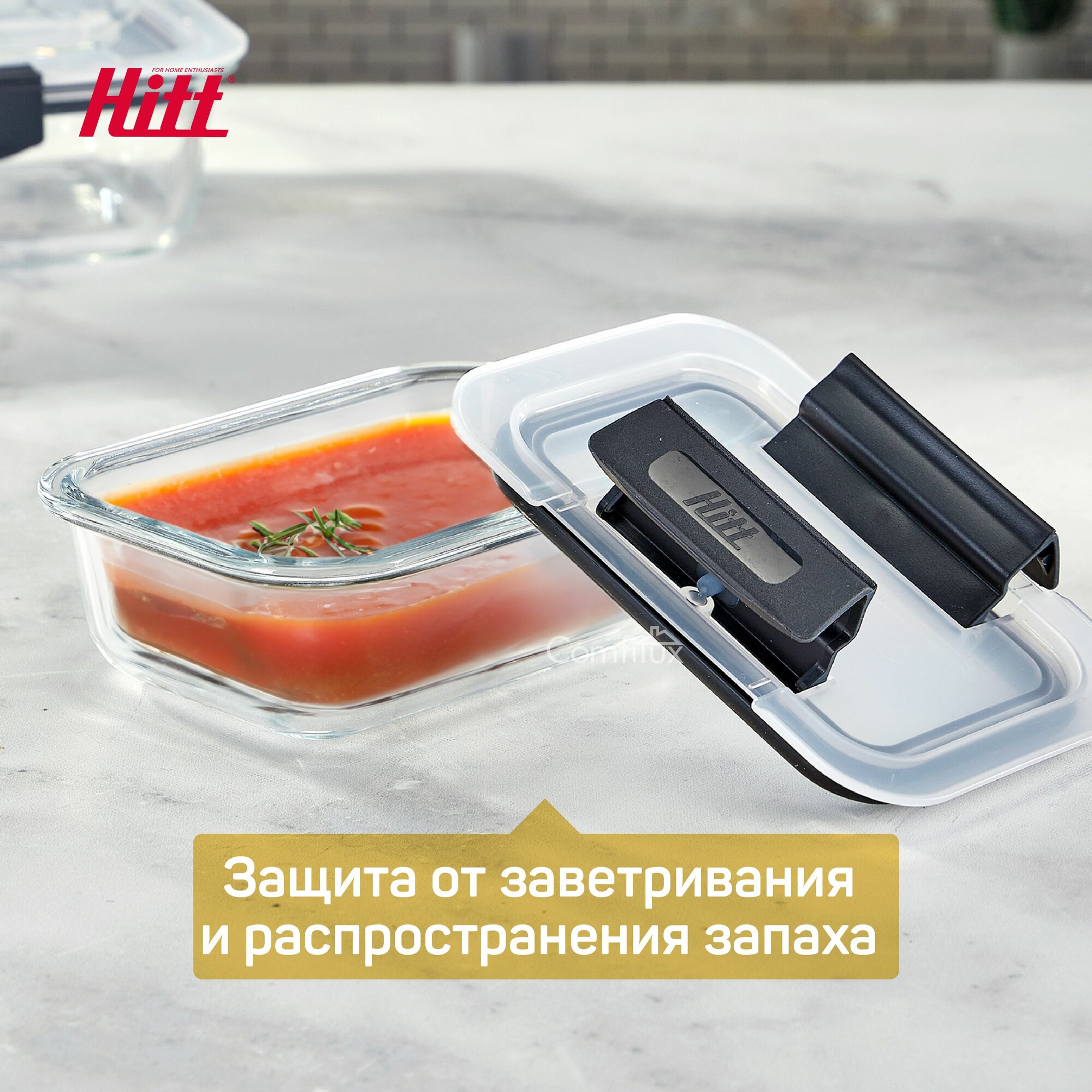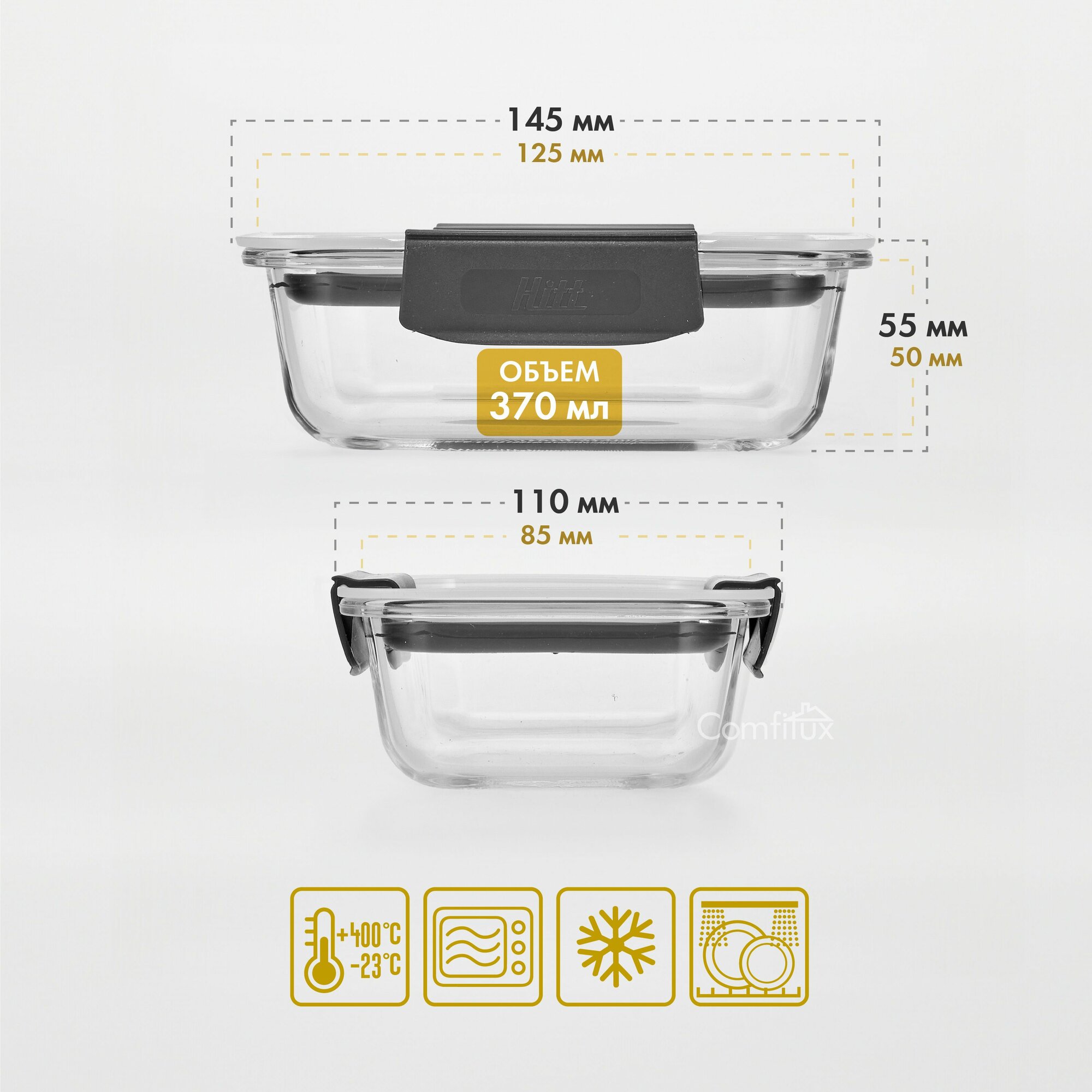 Контейнер для еды Hitt стеклянный, жаропрочный с крышкой, 370 мл интересное: