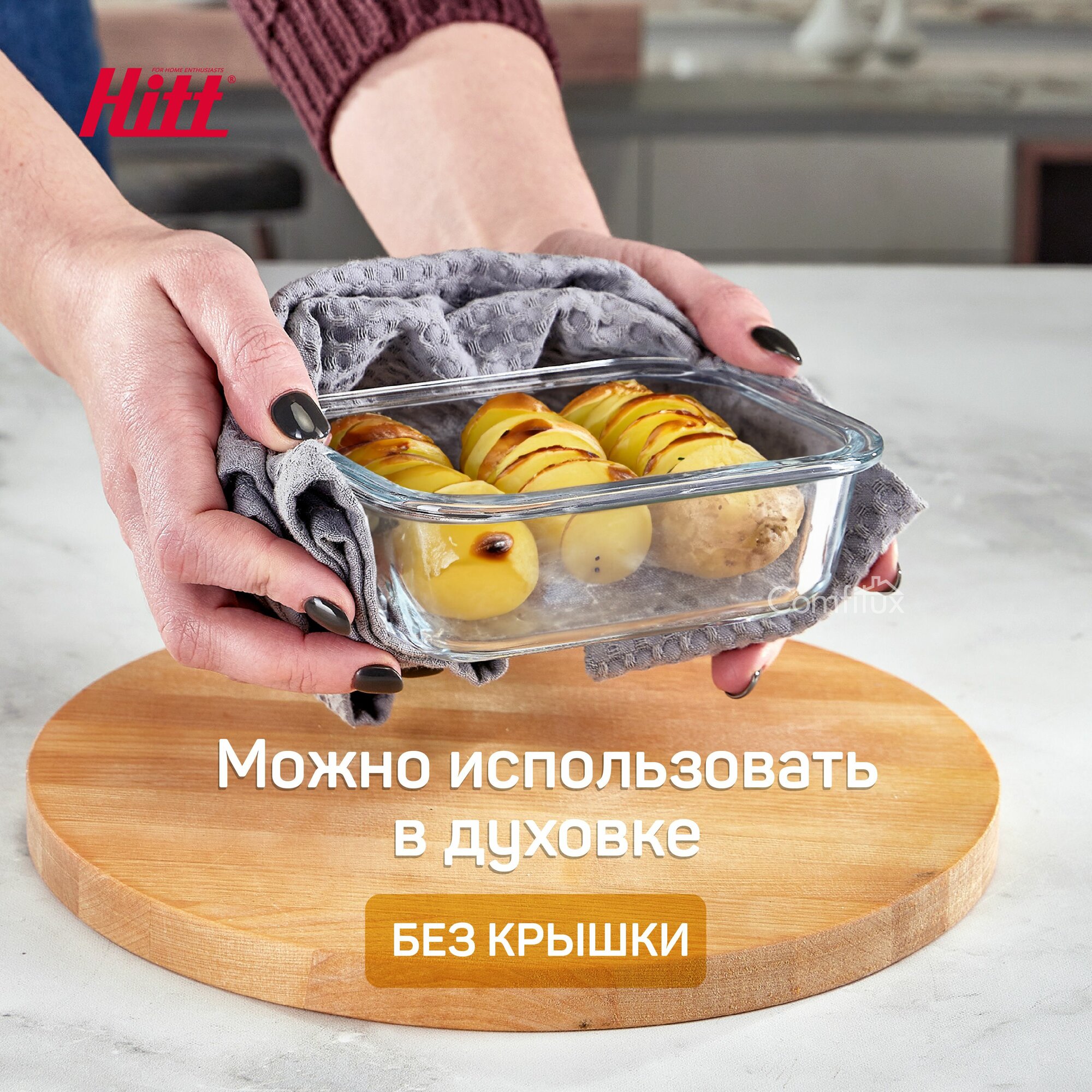 Контейнер для еды Hitt стеклянный, жаропрочный с крышкой, 1 литр