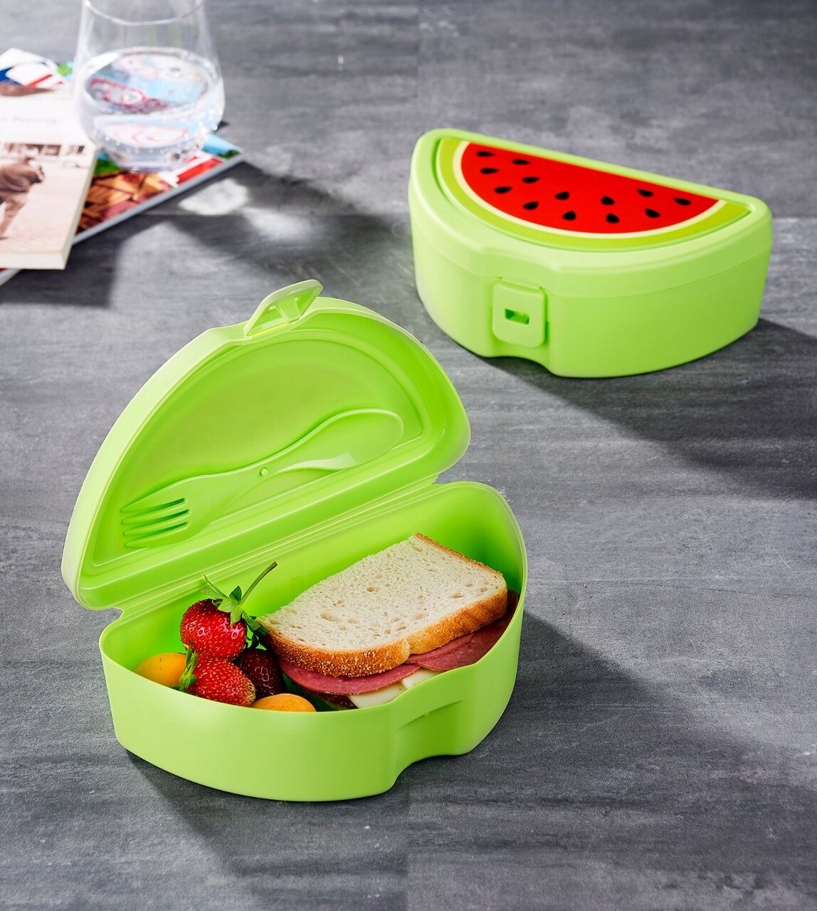 Купить Контейнер пищевой с крышкой, ланч-бокс FACKELMANN школа Арбуз, 750 мл с приборами вилка и ложка, контейнер для еды, ланч-бокс для завтрака