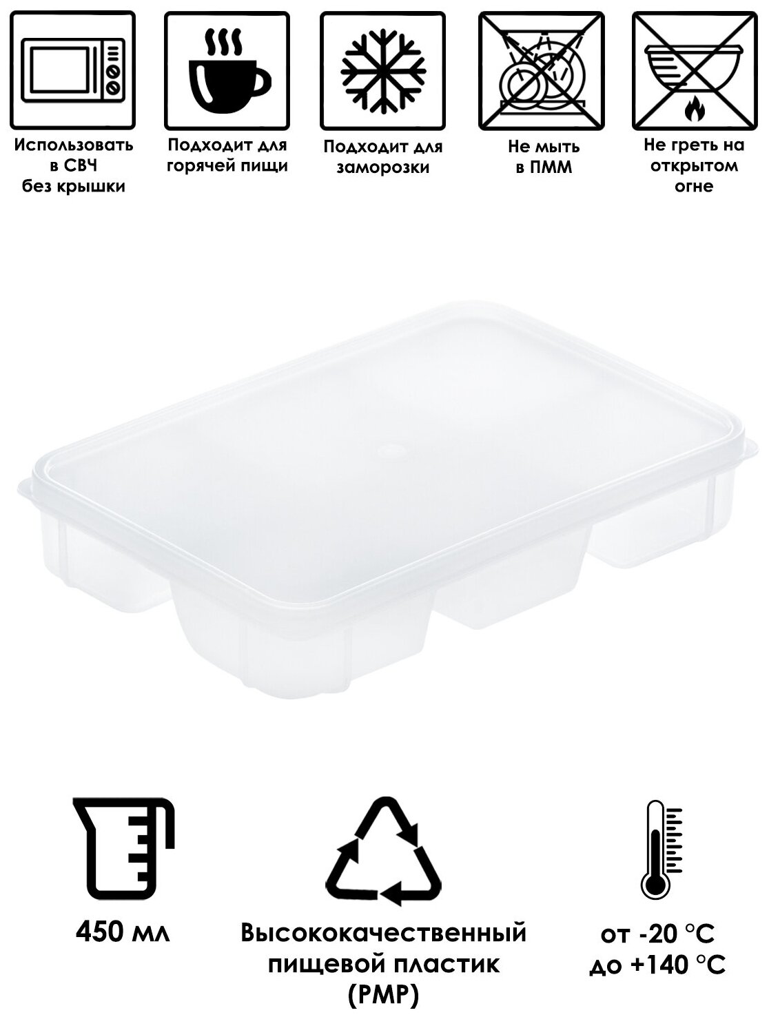 Купить Контейнер для еды и хранения продуктов и заморозки и СВЧ пластиковый 75 мл 20,6х14х4 см
