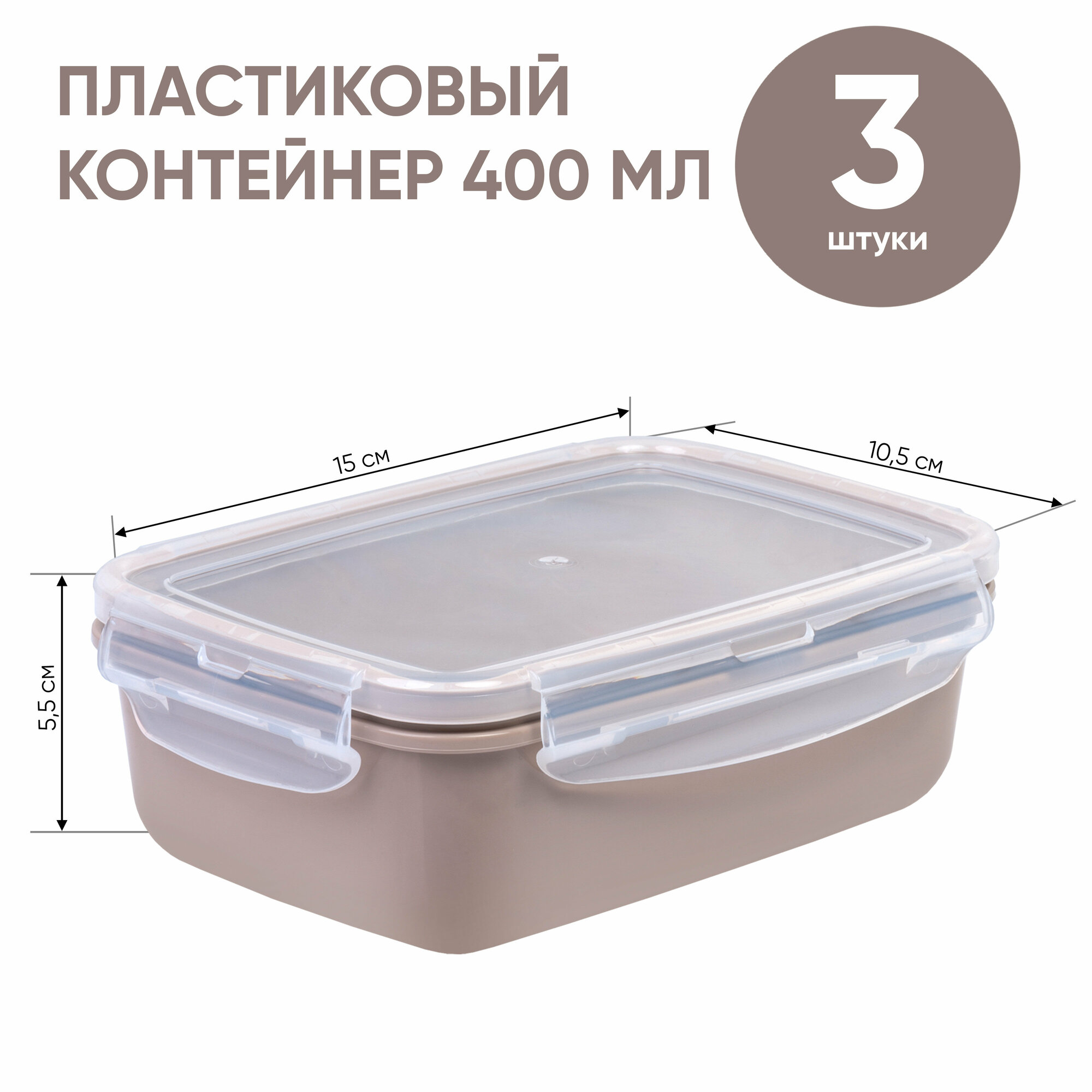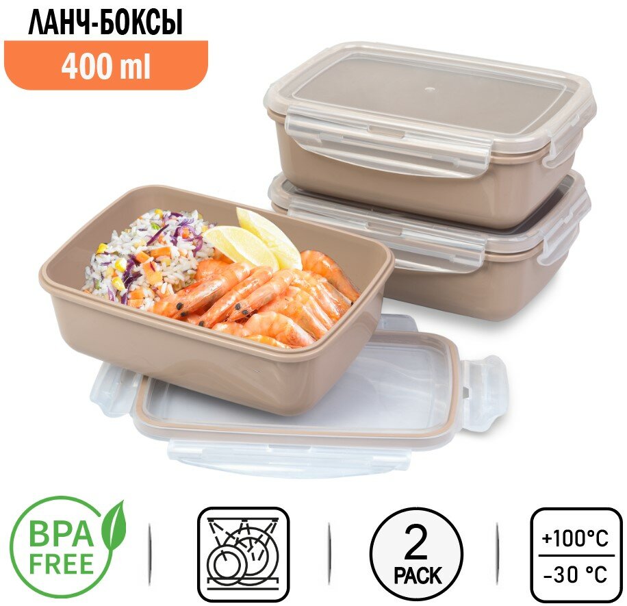Купить FSYA043 Контейнеры для еды YUDELI 400 мл, 3 шт, цвет капучино, герметичные ланч-боксы с крышками на защелках