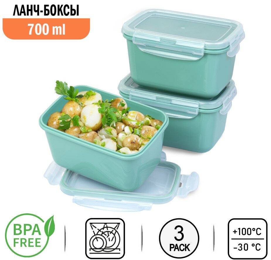 Купить FSYA038 Контейнеры для еды YUDELI 700 мл, 3 шт, цвет фисташковый, герметичные ланч-боксы с крышками на защелках