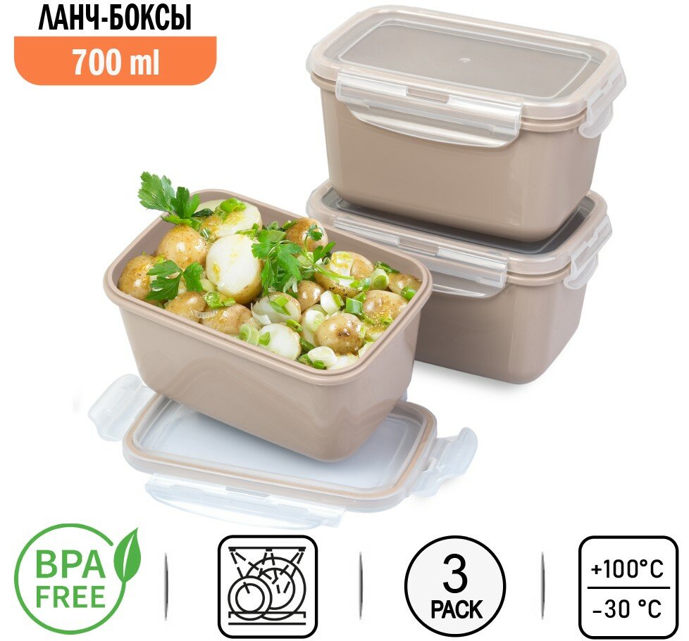 Купить FSYA044 Контейнеры для еды YUDELI 700 мл, 3 шт, цвет капучино, герметичные ланч-боксы с крышками на защелках