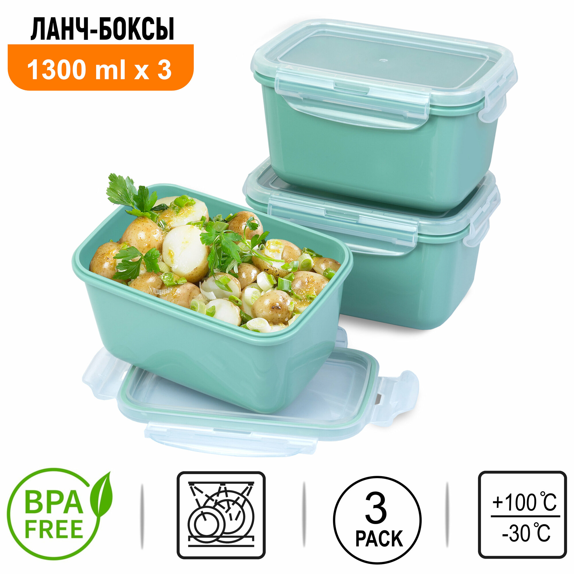 Купить FSYA040 Контейнеры для еды YUDELI 1300 мл, 3 шт, цвет фисташковый, герметичные ланч-боксы с крышками на защелках