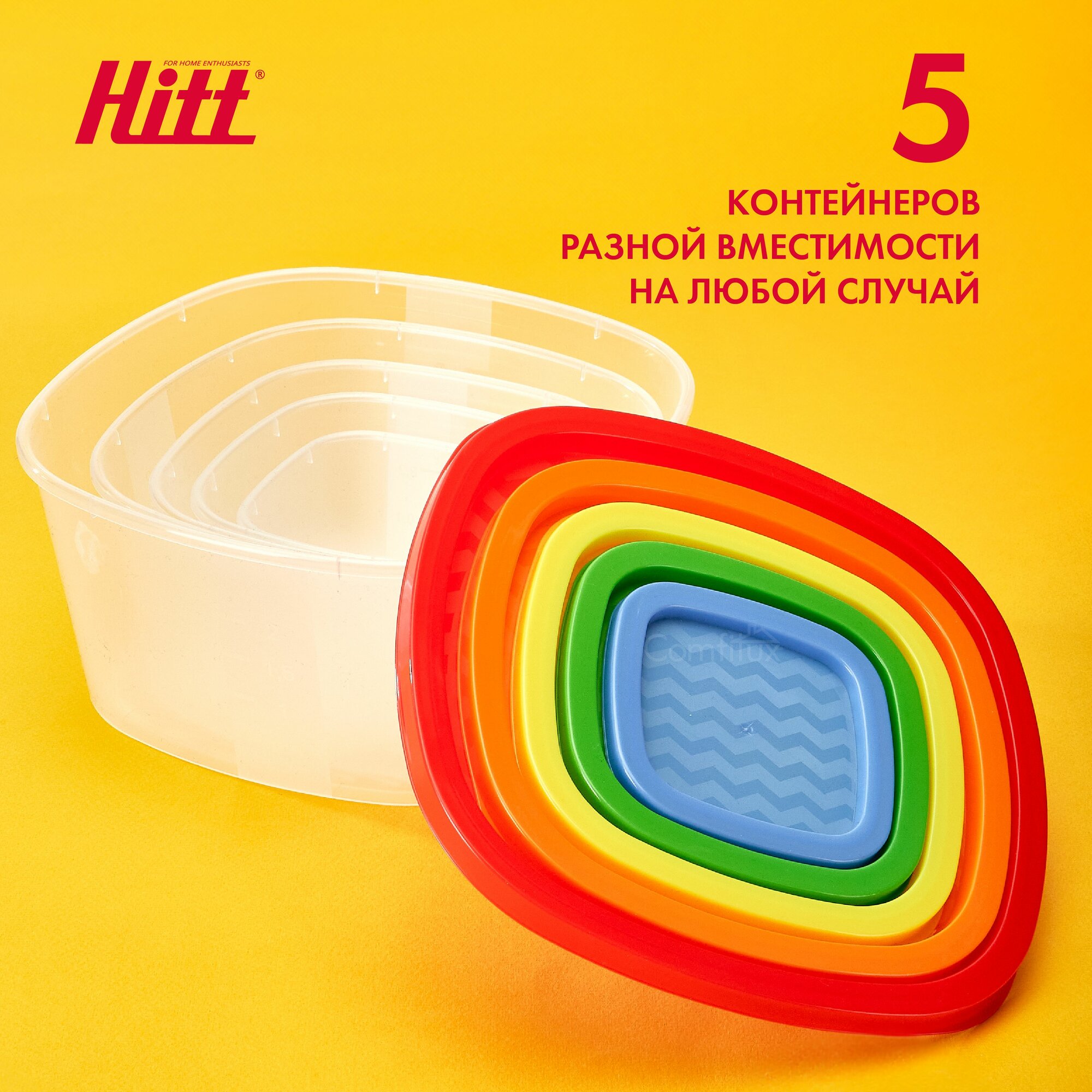 Набор контейнеров для еды Hitt , 5 штук, пластиковые: 0.23 л, 0.5 л, 0.9 л, 1.55 л, 2.65 л интересное:
