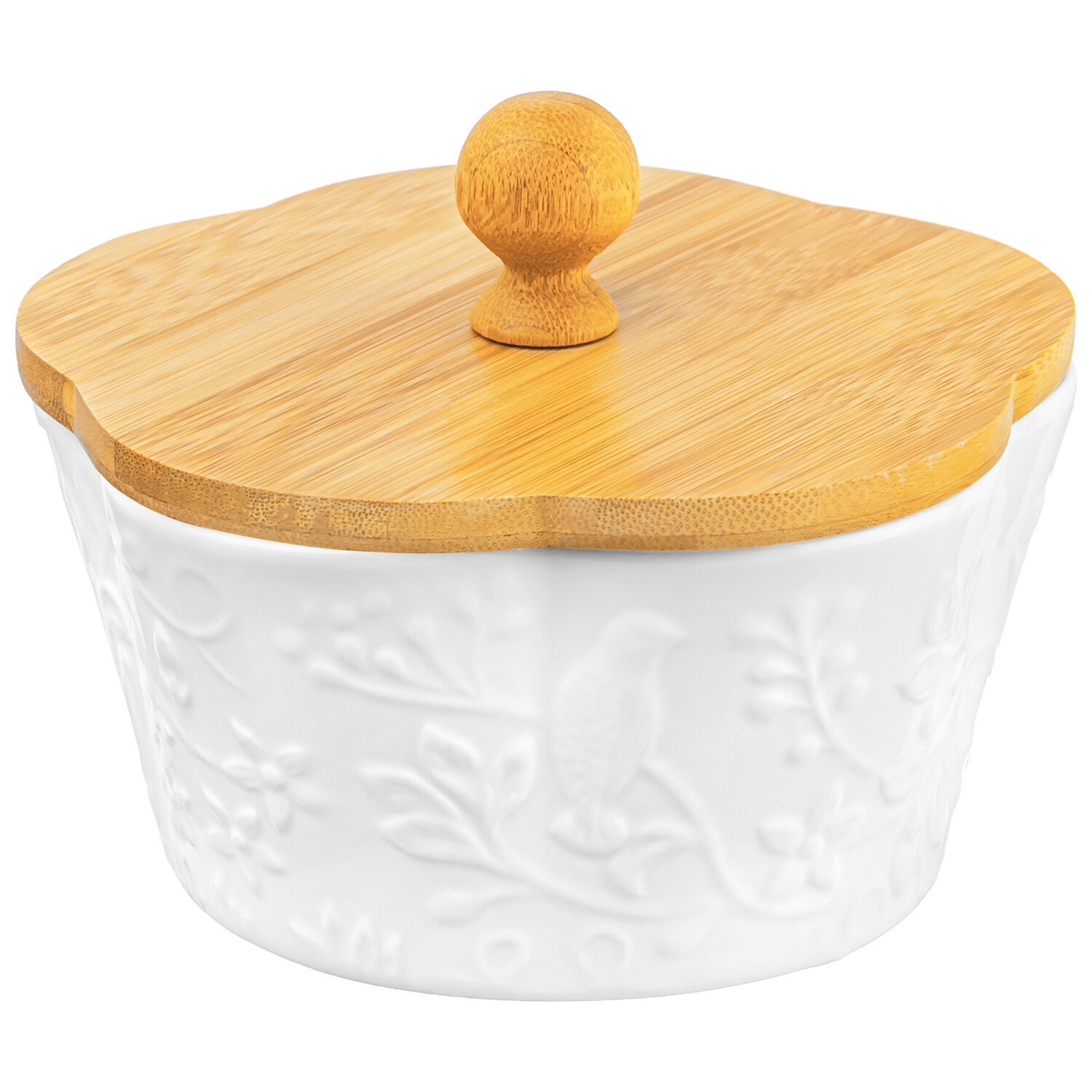 | Дополнительная информация | Банка для печенья круглая рельефная "Птички на ветке" 14,8х14,8х11,5 см, 760 мл, с деревянной крышкой, высота без крышки - 7 см |