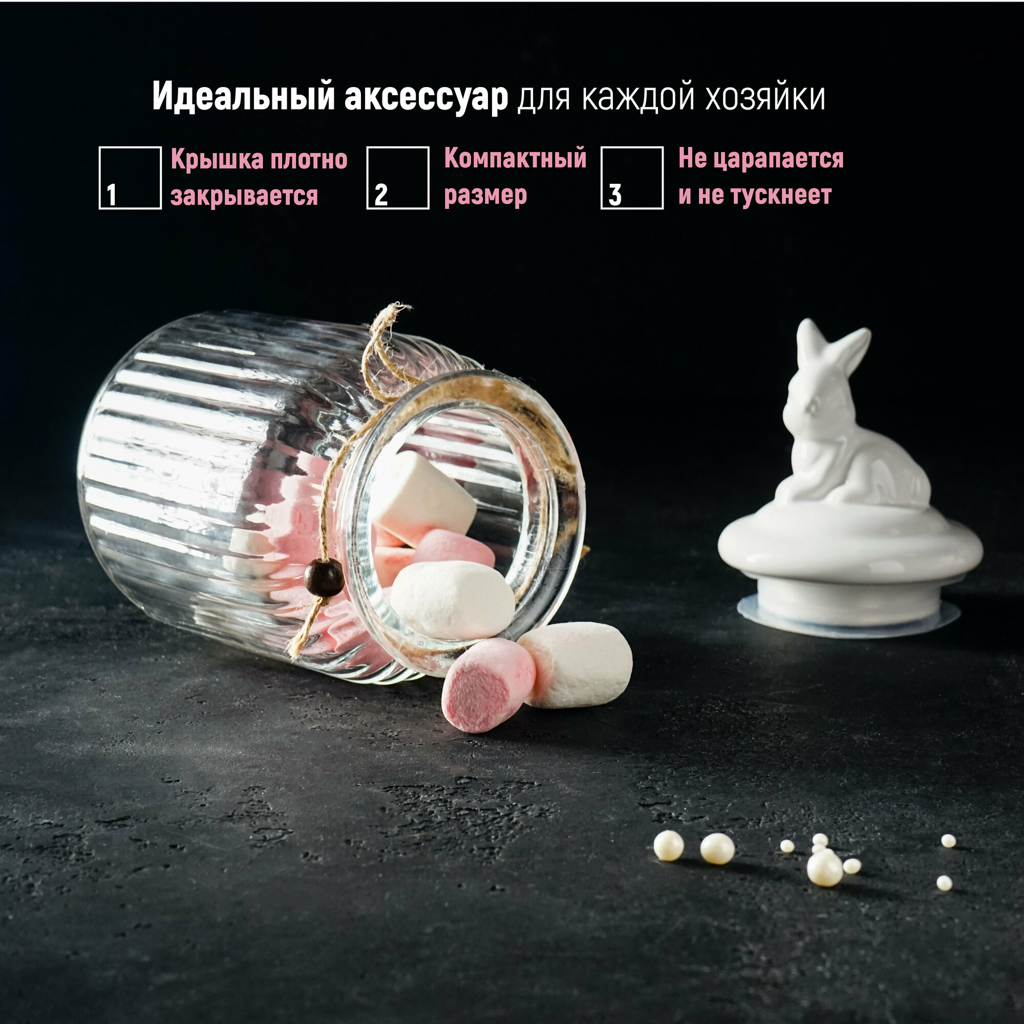 Банка для сыпучих продуктов с керамической крышкой, сахарница стеклянная Доляна «Зайка» 600 мл