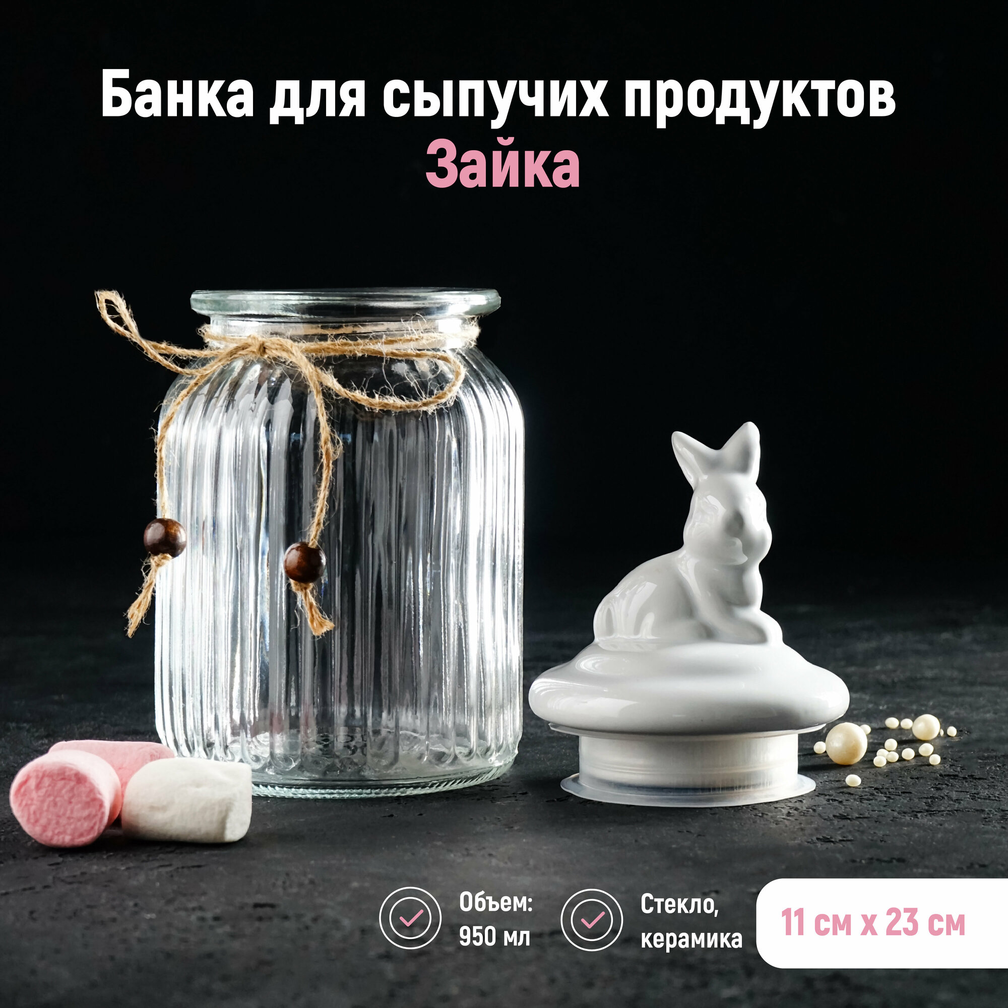 Купить Банка стеклянная для сыпучих продуктов с керамической крышкой Доляна «Зайка», 950 мл