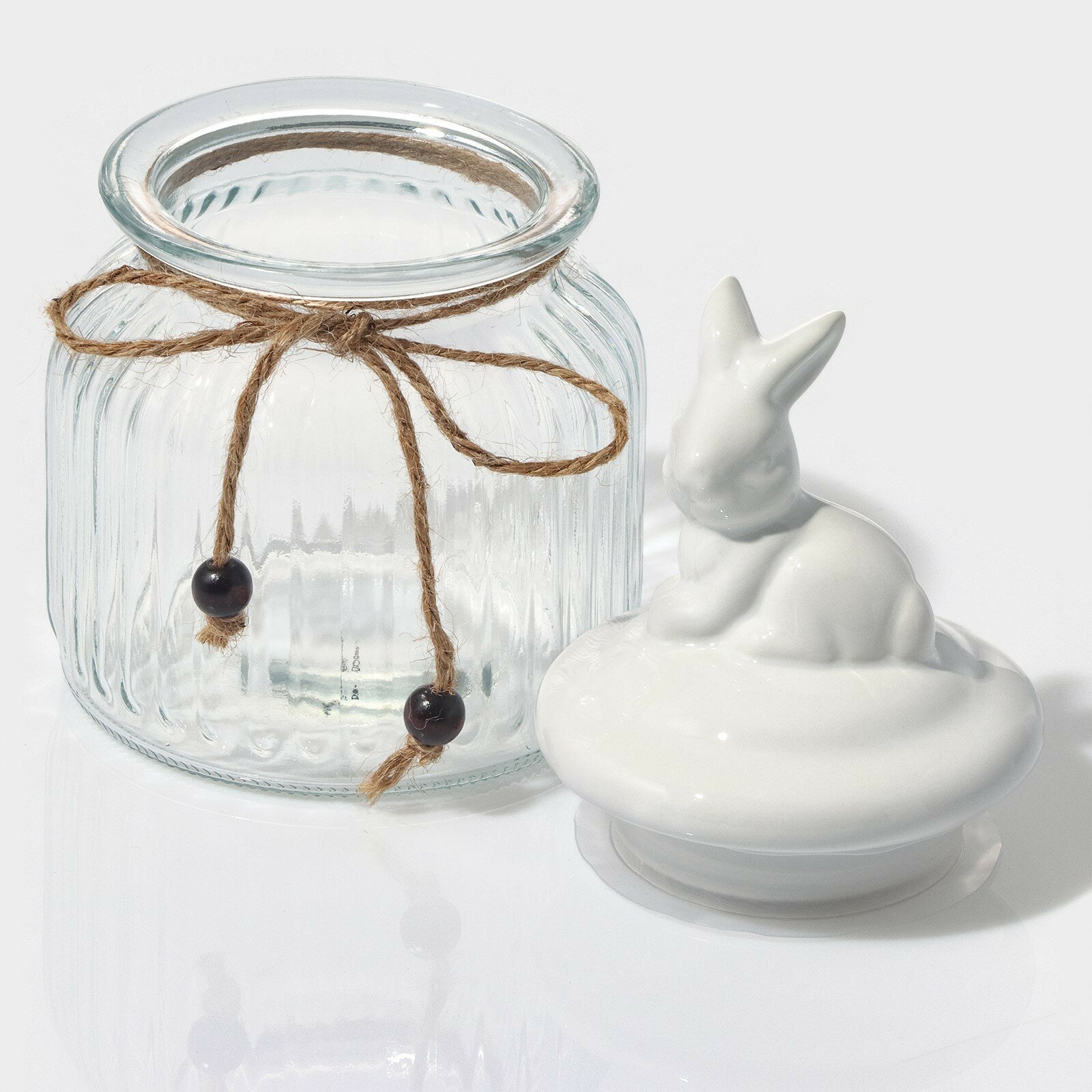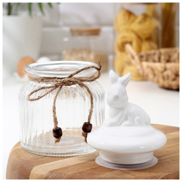 Банка для сыпучих продуктов с керамической крышкой, сахарница стеклянная Доляна «Зайка» 600 мл