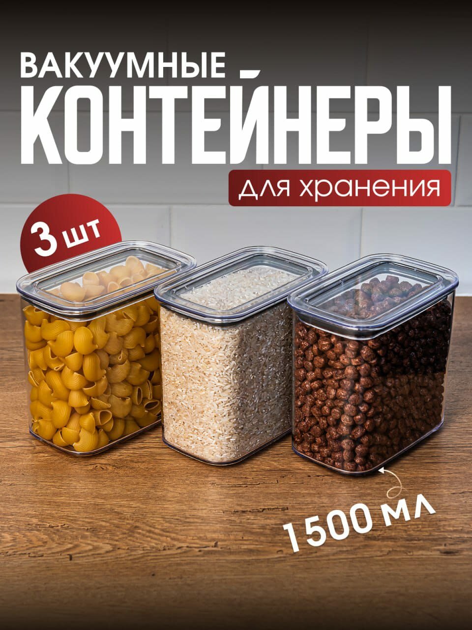 Набор вакуумных контейнеров для сыпучих продуктов "Ультра" объемом 1,5 л (3шт в наборе) интересное: