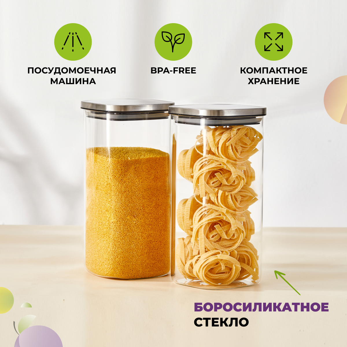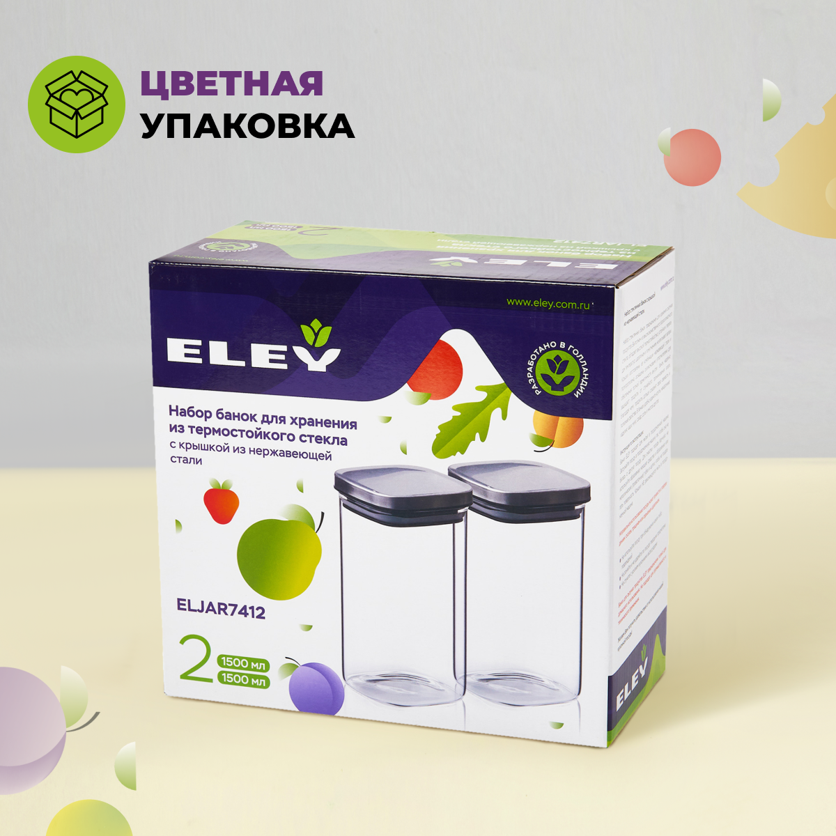 Купить Набор из 2х стеклянных банок для хранения еды или сыпучих продуктов Eley 1500мл