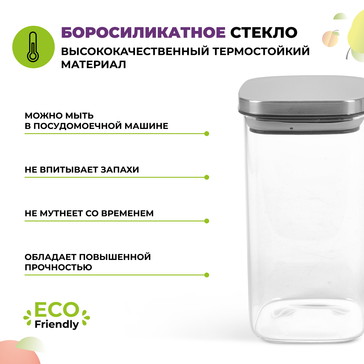 Набор банок для хранения еды и сыпучих продуктов из жаропрочного стекла Eley 2 штуки - 800 мл
