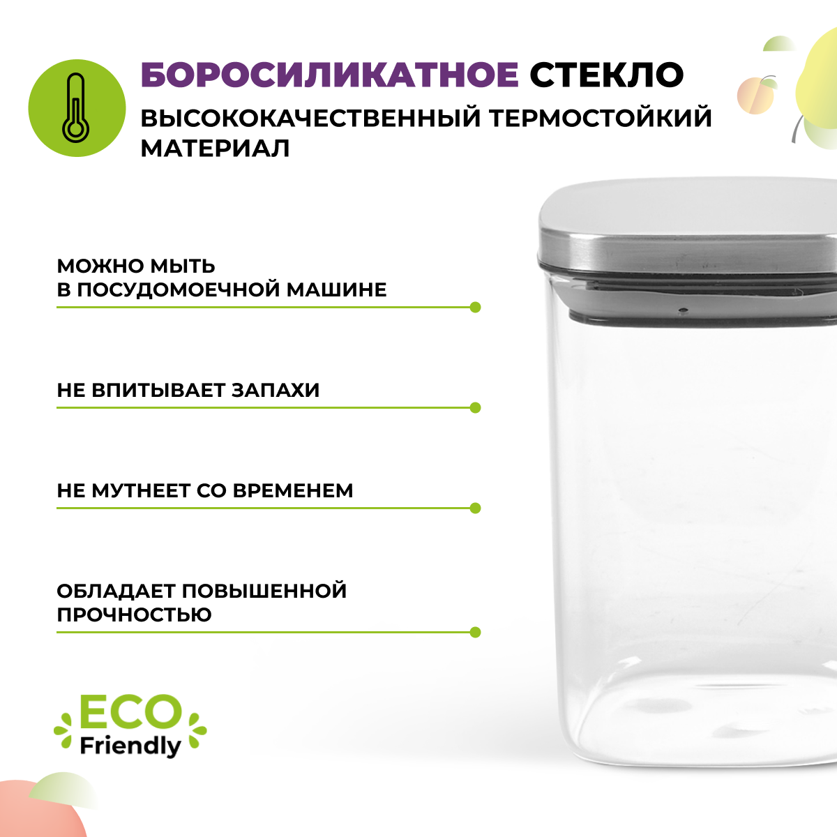 Набор банок для хранения еды и сыпучих продуктов из жаропрочного стекла Eley 2 штуки - 800 мл