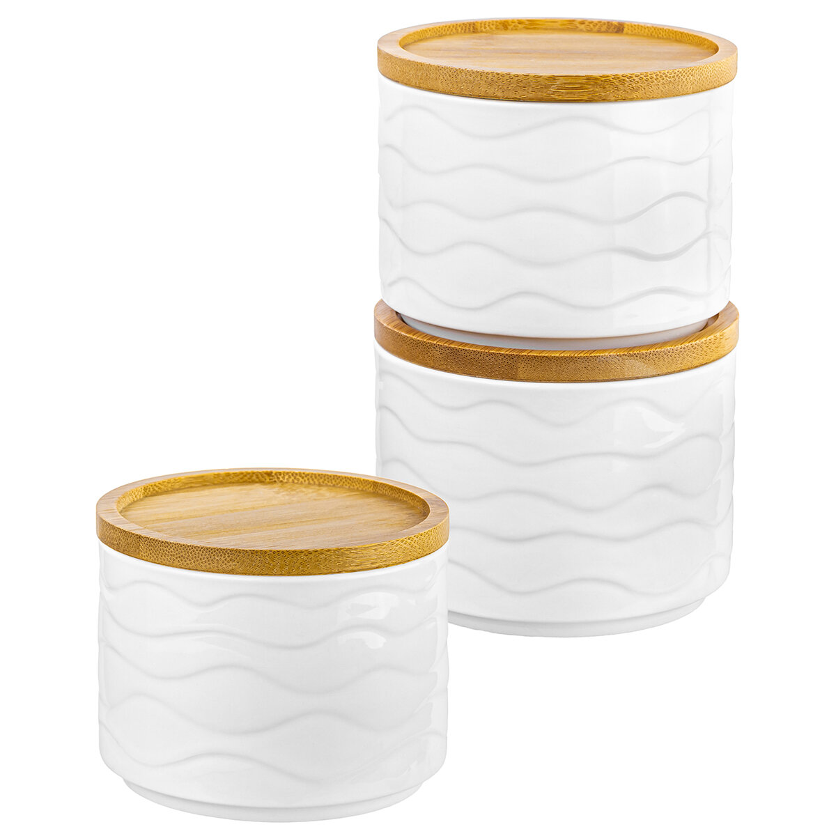 Банка для хранения сыпучих продуктов / соли / специй /чая / кофе 3 шт 250 мл Elan Gallery Айсберг волны + дер. кр.-подст., набор интересное:
