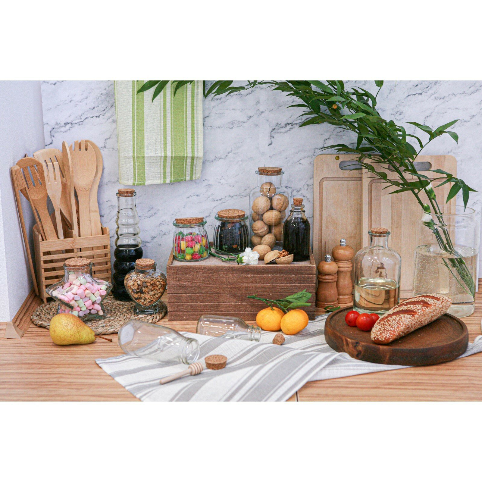 Банка стеклянная для хранения сыпучих продуктов BellaTenero Классика , 550 мл, 8,5 13 см, с пробковой крышкой