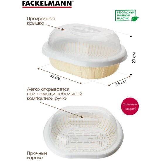FACKELMANN Хлебница с прозрачной крышкой "3 в 1", 32*23*14,5см, хлебница пластиковая , сухарница, контейнер для еды интересное: