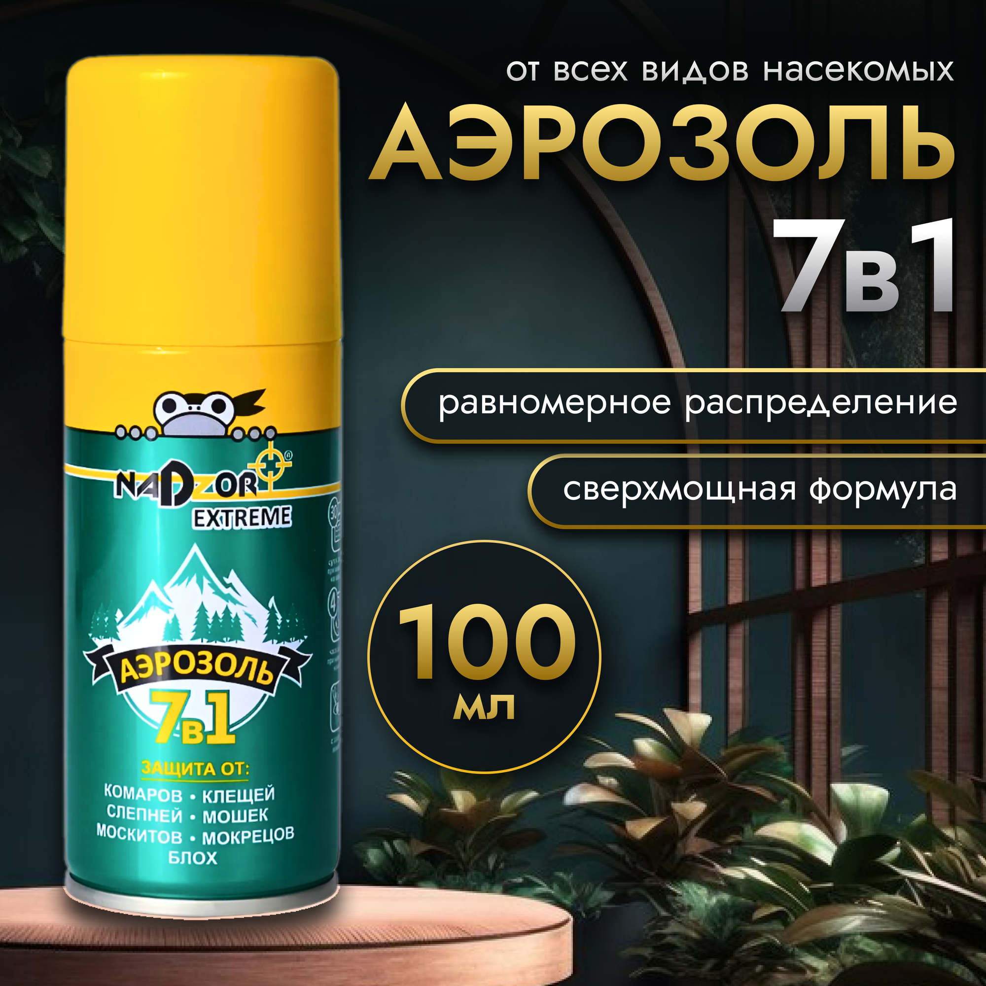 Купить Новинка Аэрозоль 7 в 1 от комаров, клещей, слепней, мошек, москитов, мокрецов, блох, мокрецов