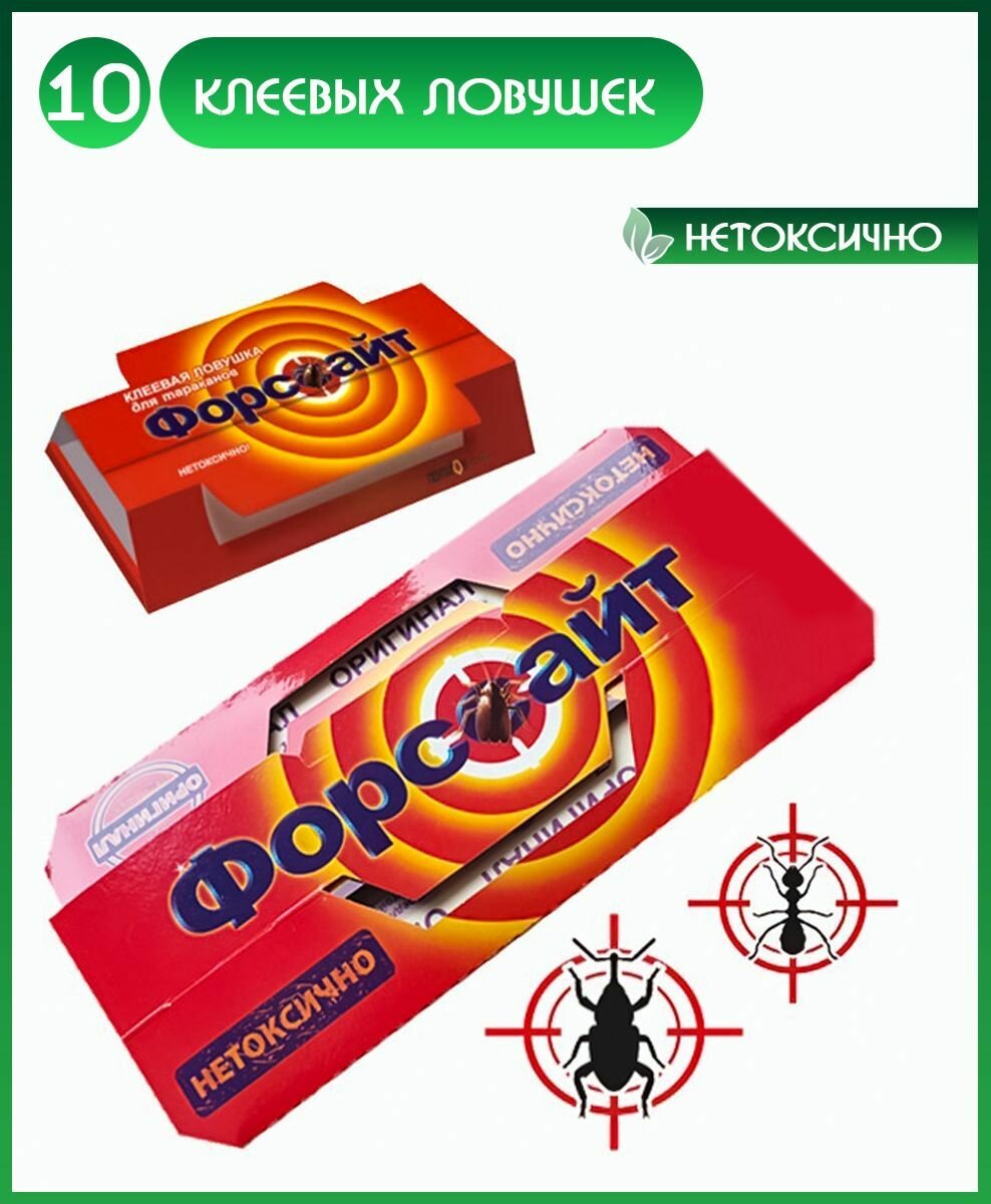 Форссайт (Форсайт) клеевая ловушка от тараканов 10 шт. (2 упаковки по 5 шт.) Домики для тараканов с таблеткой-приманкой, феромоновым привлекателем интересное: