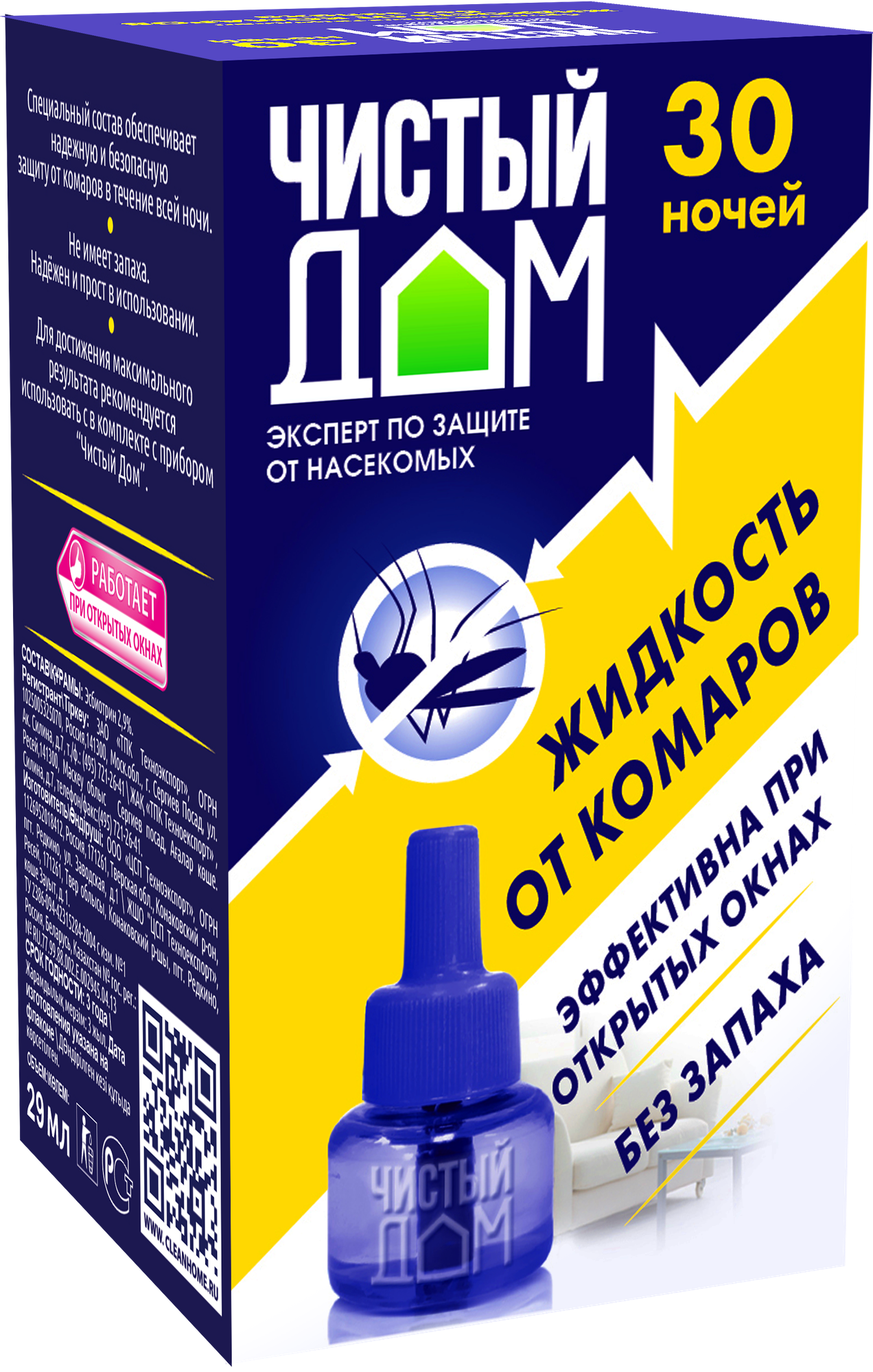 Жидкость от комаров для фумигаторов Чистый Дом 30 ночей без запаха интересное: