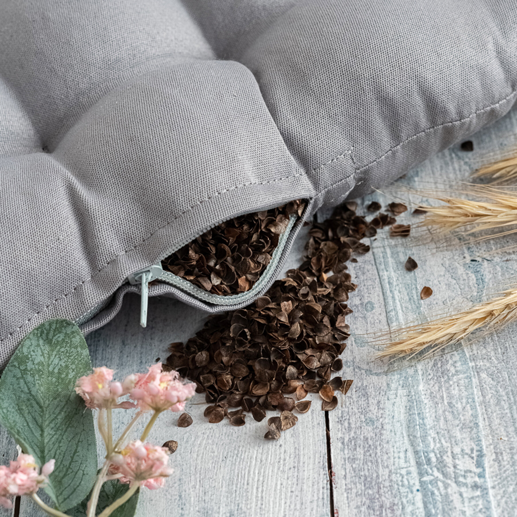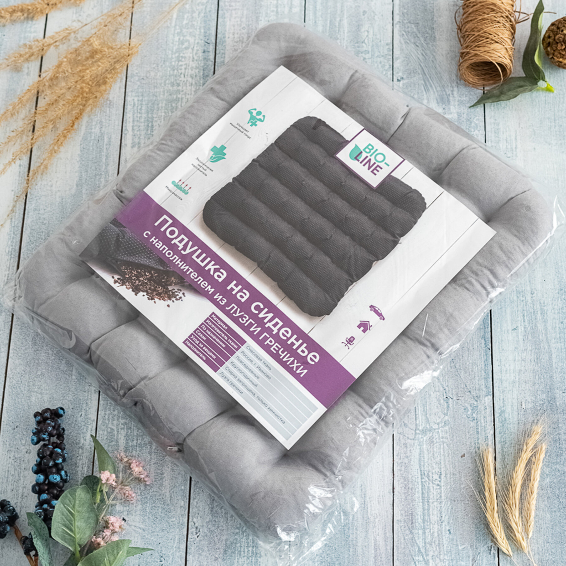 Купить Подушка на стул с лузгой гречихи Bio-Line ,универсальная,ортопедическая,для офисного кресла,в автомобиль,40х40 см, светло-серый