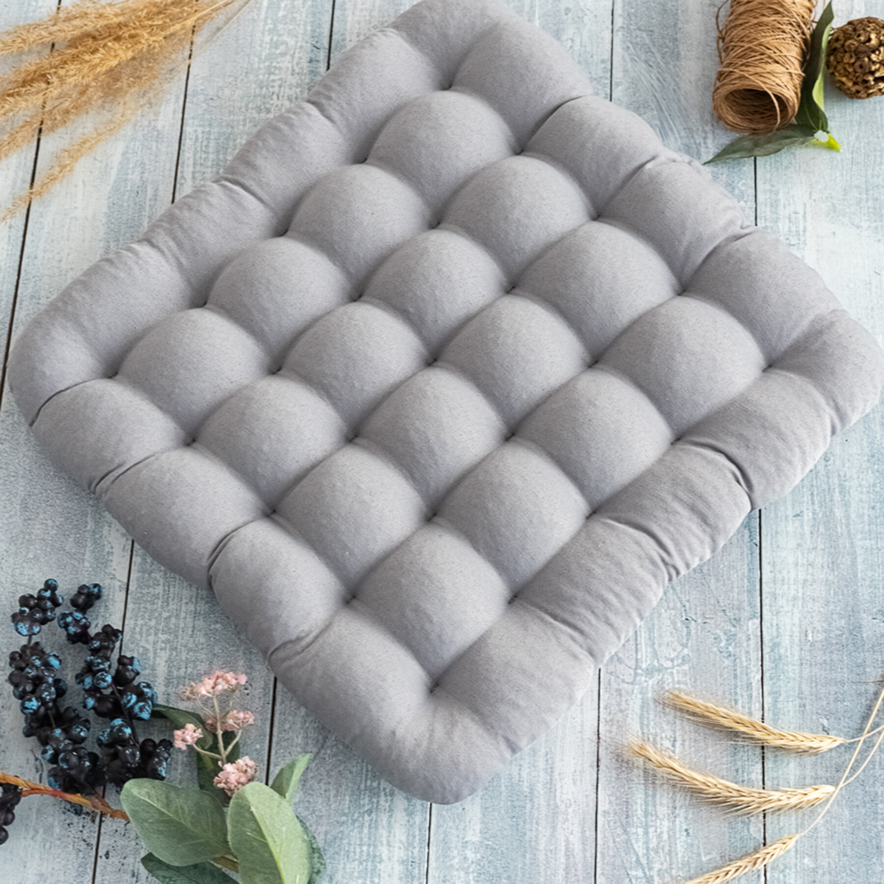 Подушка на стул с гречневой лузгой, 40х40 см, ортопедическая подушка Bio-Line, серый