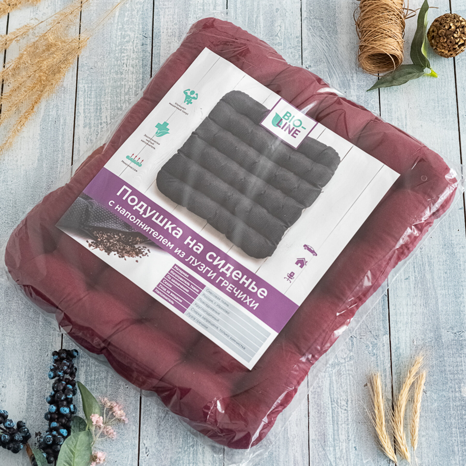 СохранитьПодушка на стул ортопедическая с лузгой гречихи Bio-Line ,для кресла,в автомобиль,для школьника,40х40 см, бордовый интересное: