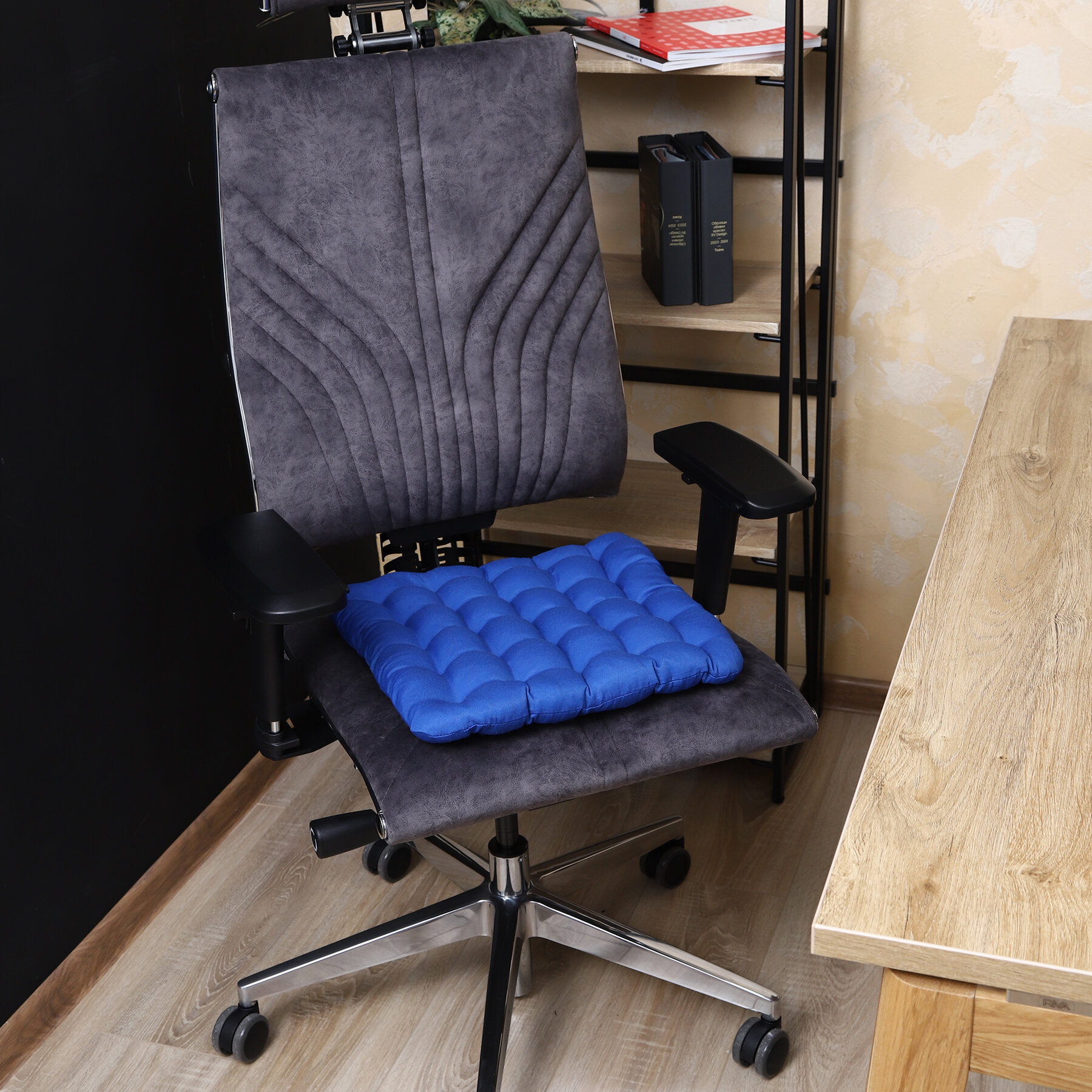 Подушка на стул ортопедическая с лузгой гречихи Bio-Line ,для кресла,в автомобиль,для школьника,40х40 см, синий