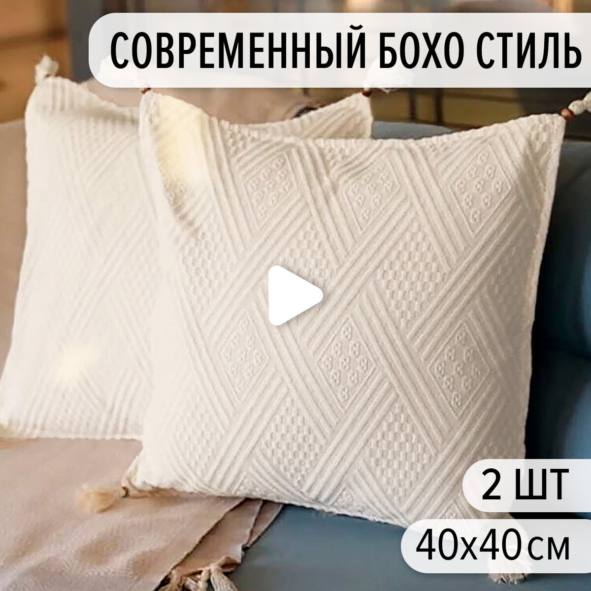 Наволочки декоративные на подушки 40х40 / хлопок/ цвет бежевый / стиль Бохо /2 штуки в комплекте