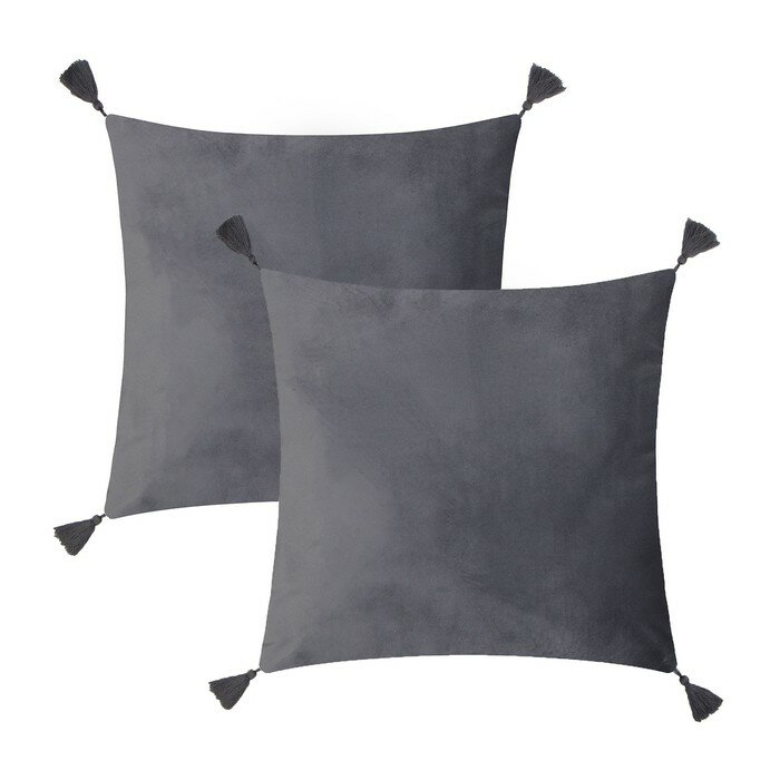 Купить Этель Набор декоративных наволочек Этель с кисточками, цвет серый, 45х45 см - 2 шт, полиэстер, велюр