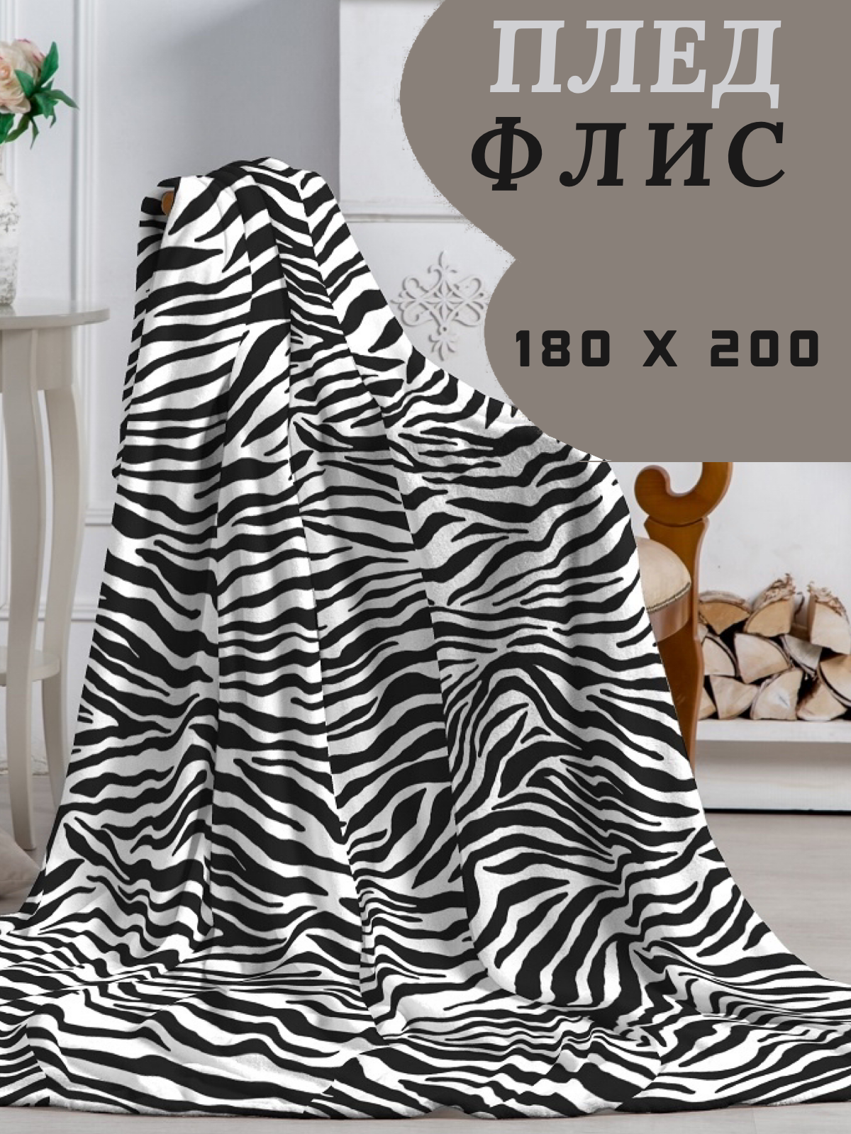 Плед 180х200, флисовый, двуспальный