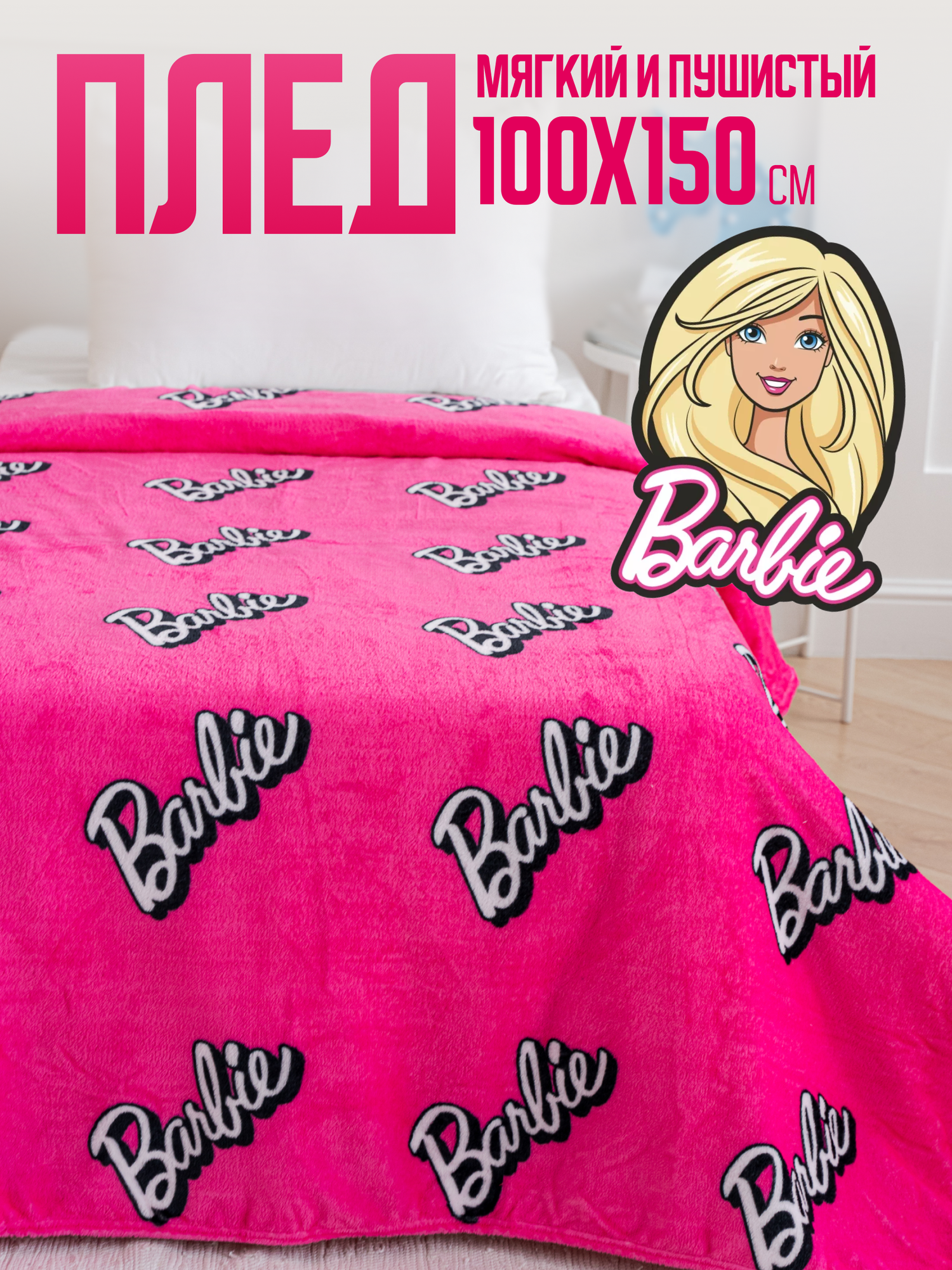 Плед 100х150 Павлинка Barbie/Барби, 1-спальный, односпальный, розовый интересное: