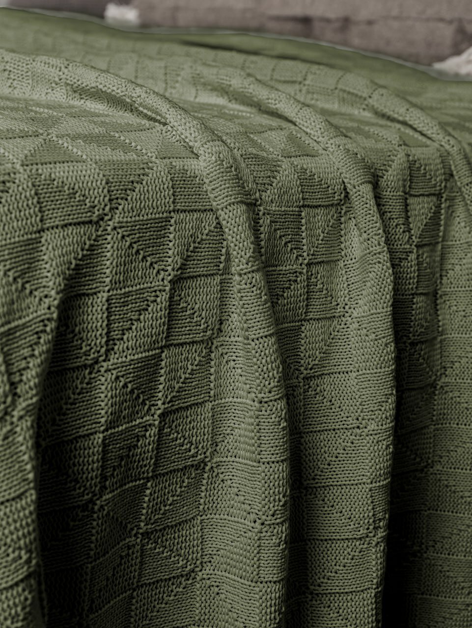 Купить Плед 220х240, вязаный, покрывало на кровать, на диван, оливковый, KING PLAID, Хлопок 100%, в подарочной сумке