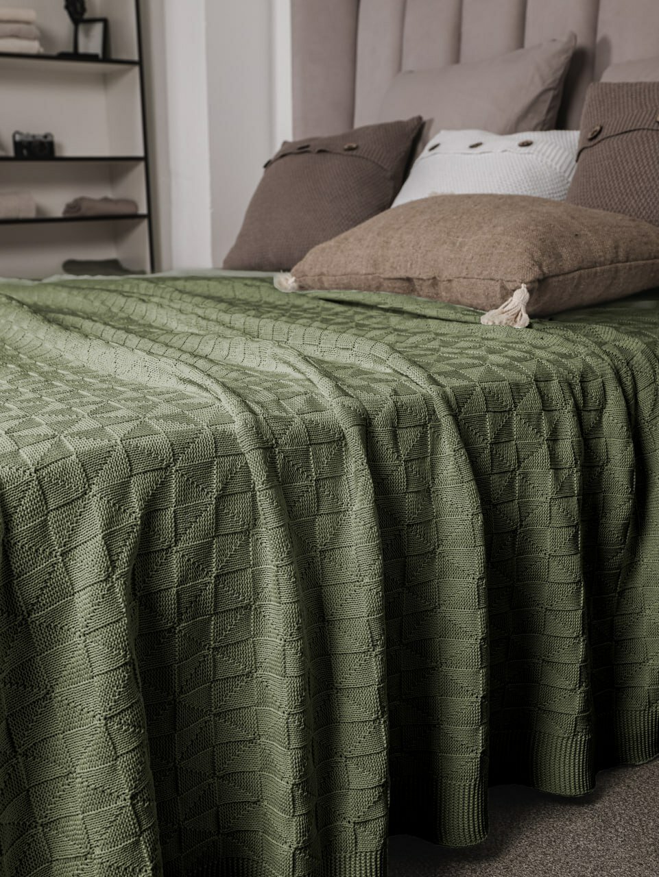 СохранитьПлед 220х240, вязаный, покрывало на кровать, на диван, оливковый, KING PLAID, Хлопок 100%, в подарочной сумке интересное: