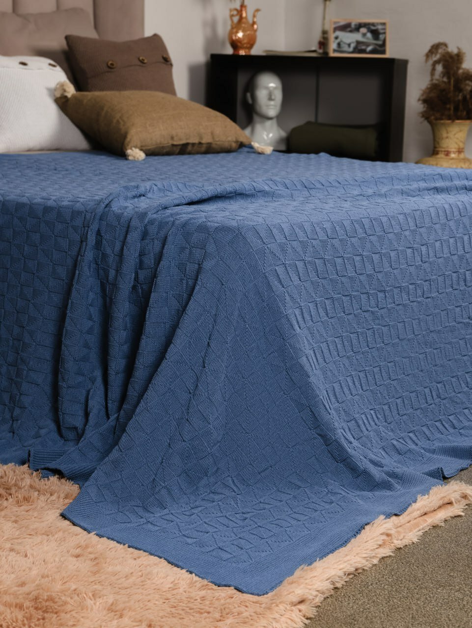 Купить Плед 220х240, вязаный, покрывало на кровать, на диван, джинс, KING PLAID, Хлопок 100%, в подарочной сумке