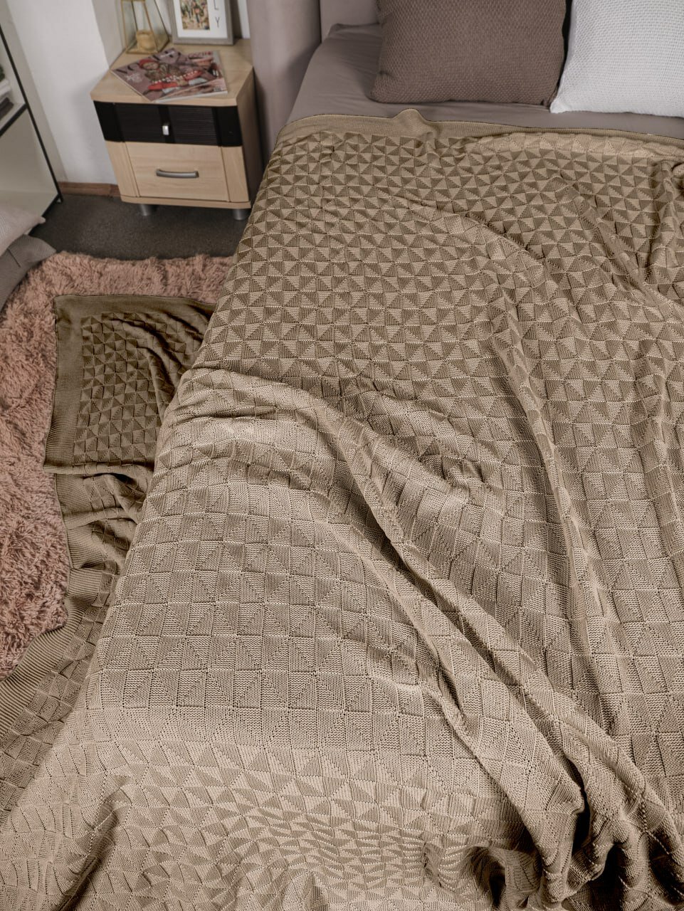 СохранитьПлед 220х240, вязаный, покрывало на кровать, на диван, бежевый, KING PLAID, Хлопок 100%, в подарочной сумке интересное: