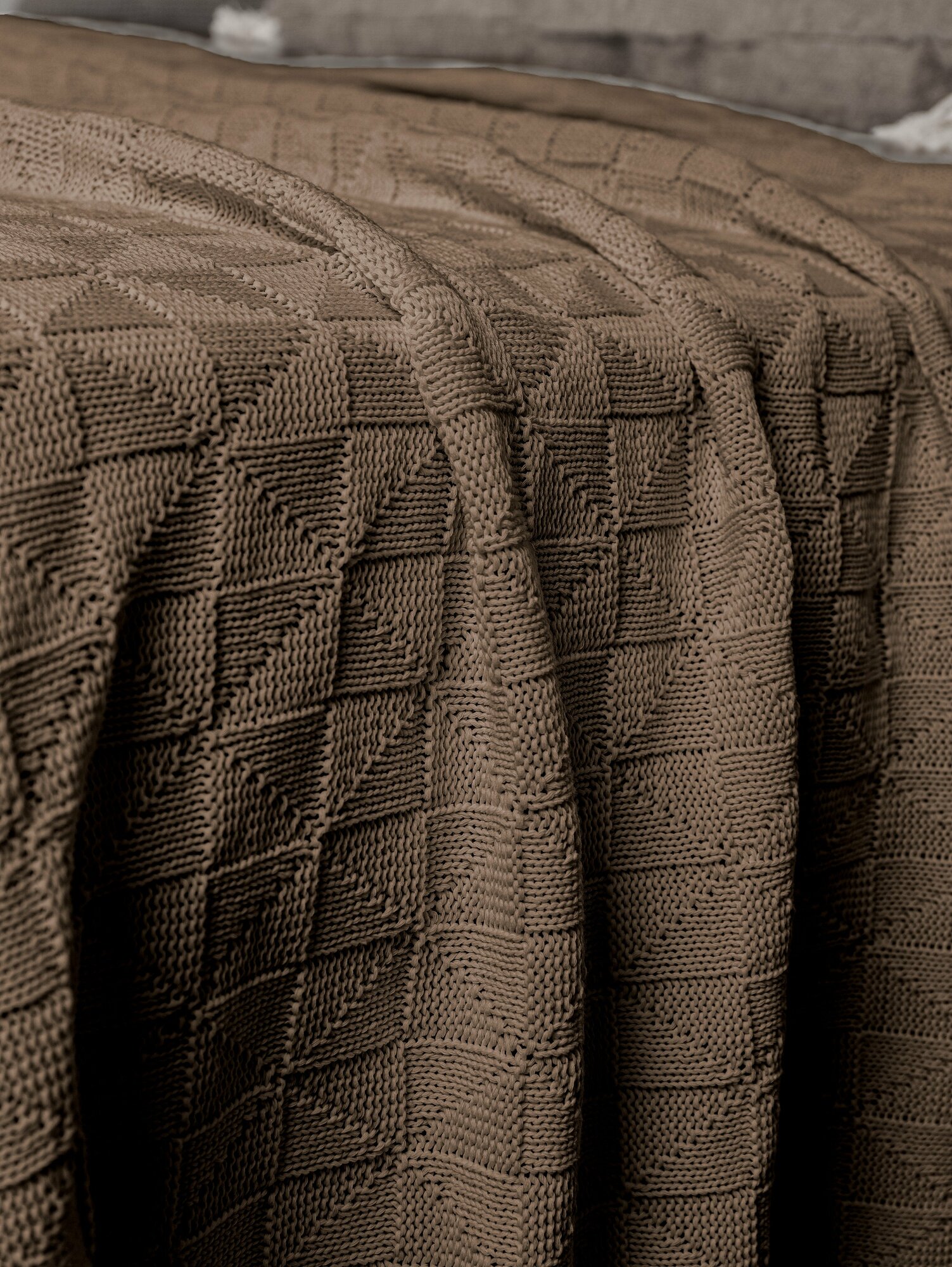Плед 150х200, детский, на кресло, вязаный, темно-серый, покрывало на кровать, на диван, KING PLAID, Хлопок 100%, в подарочной сумке