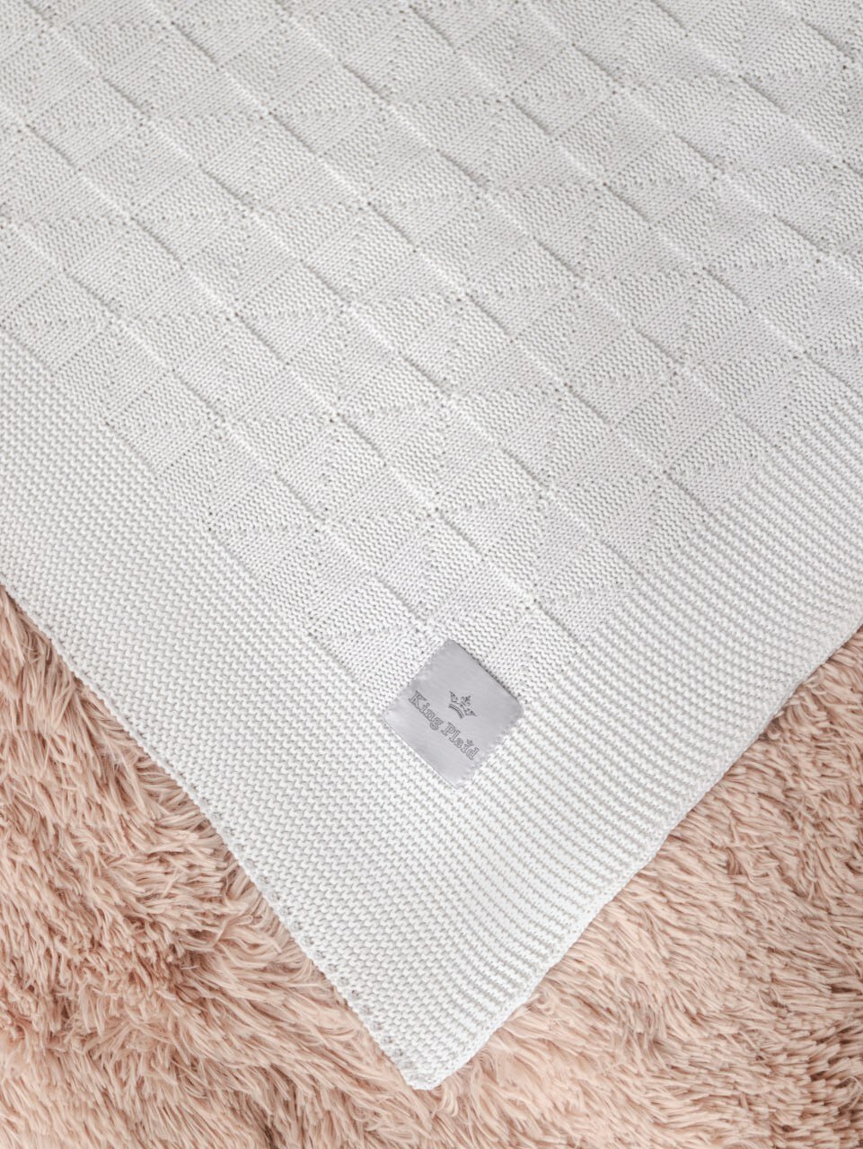 Купить Плед 150х200, детский, на кресло, вязаный, белый, покрывало на кровать, на диван, KING PLAID, Хлопок 100%, в подарочной сумке