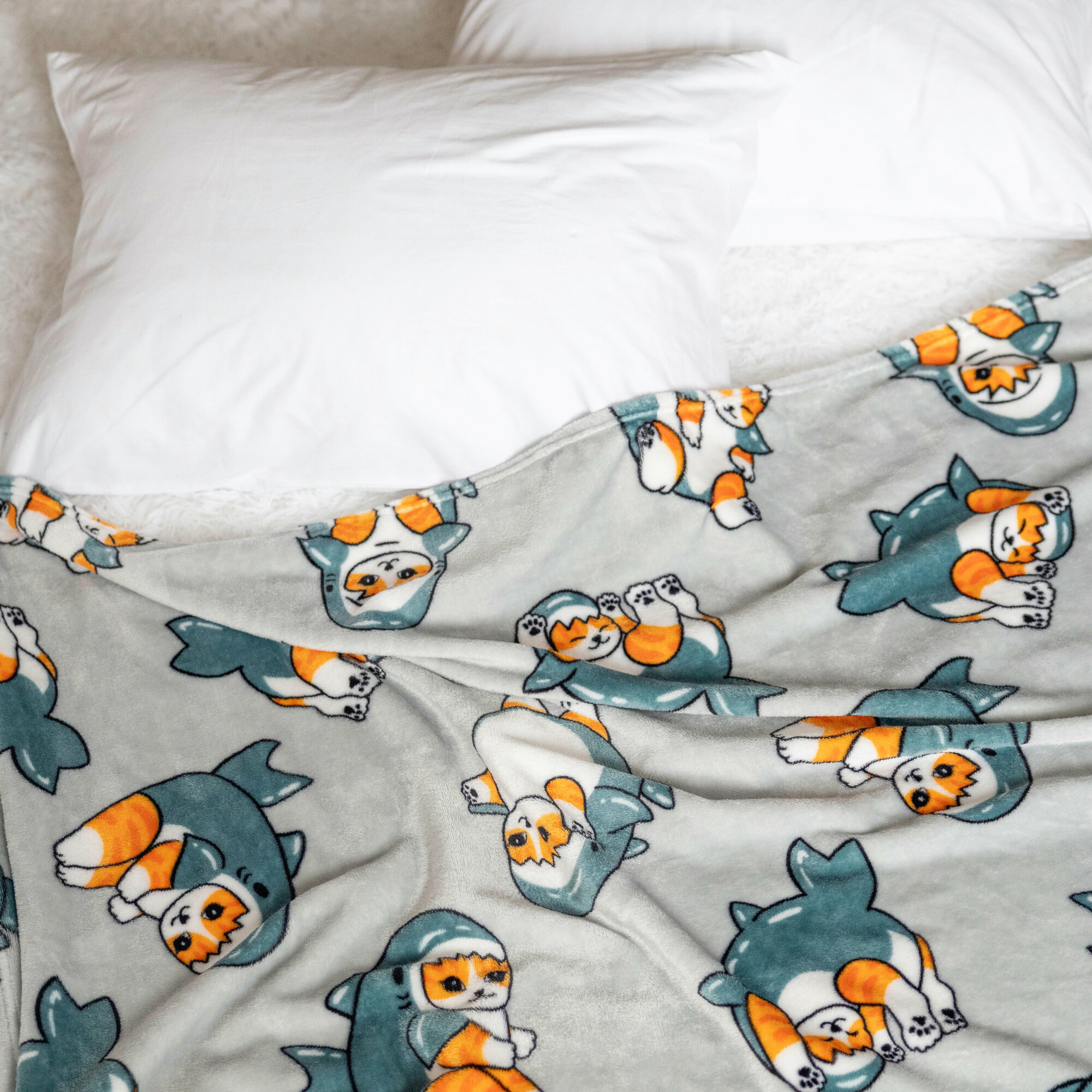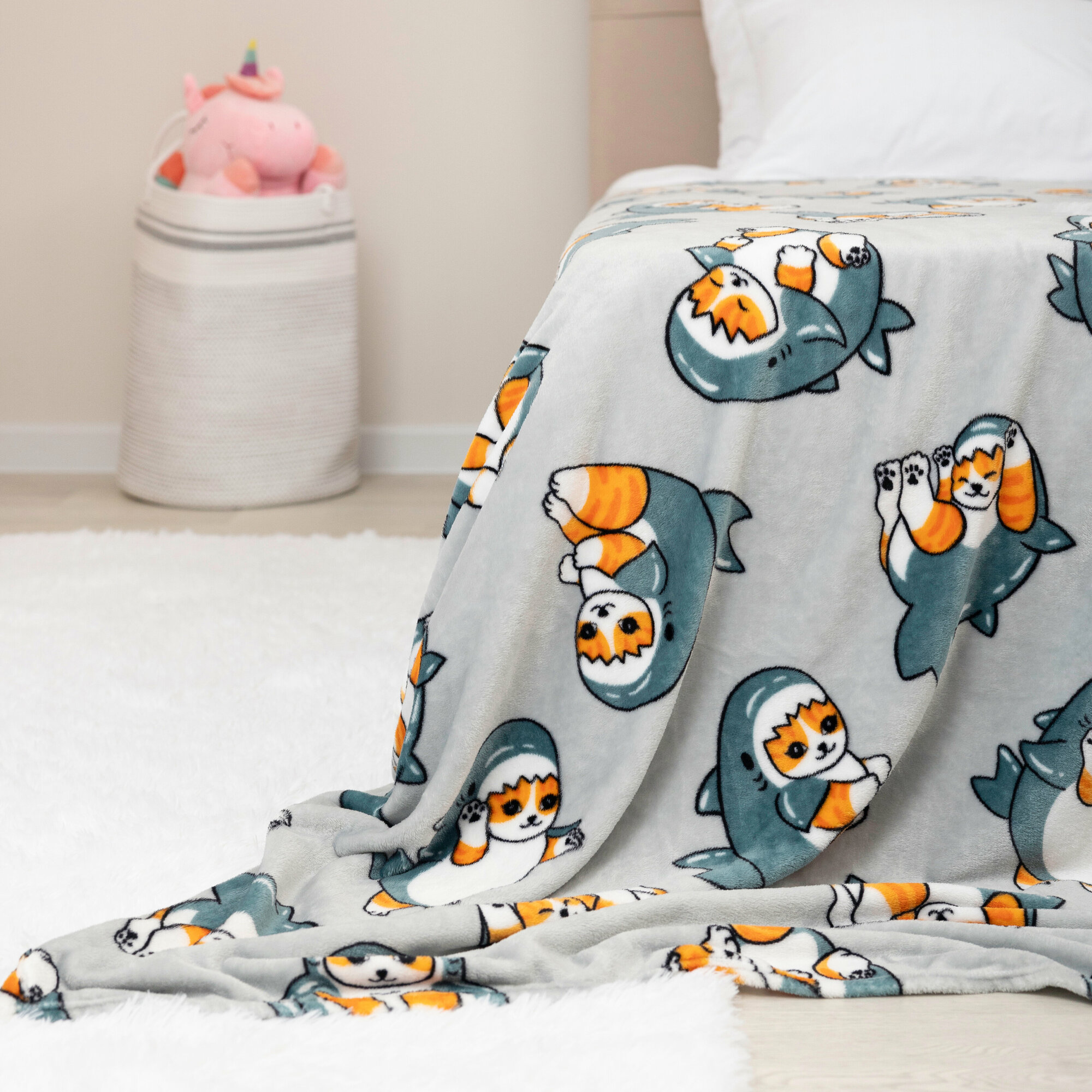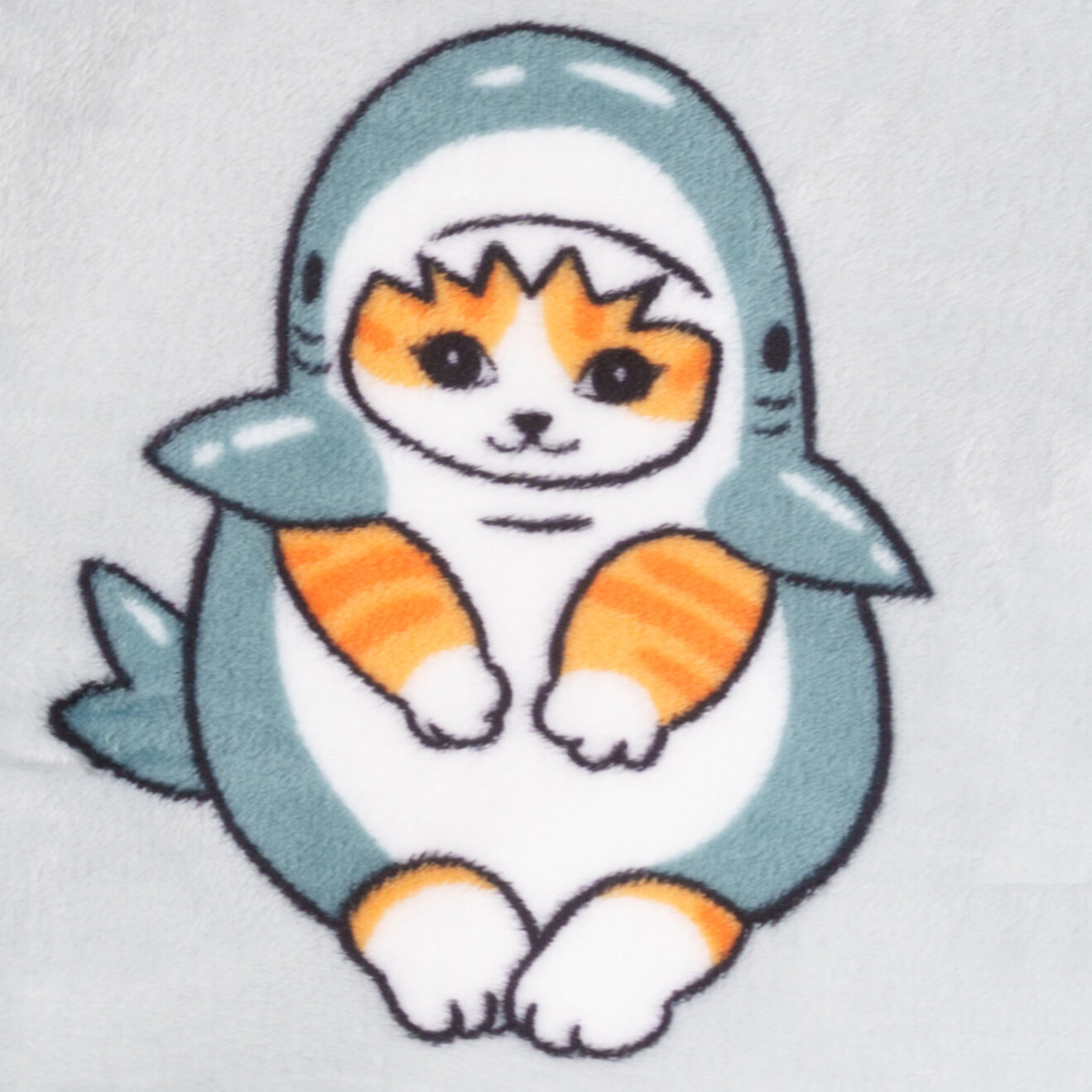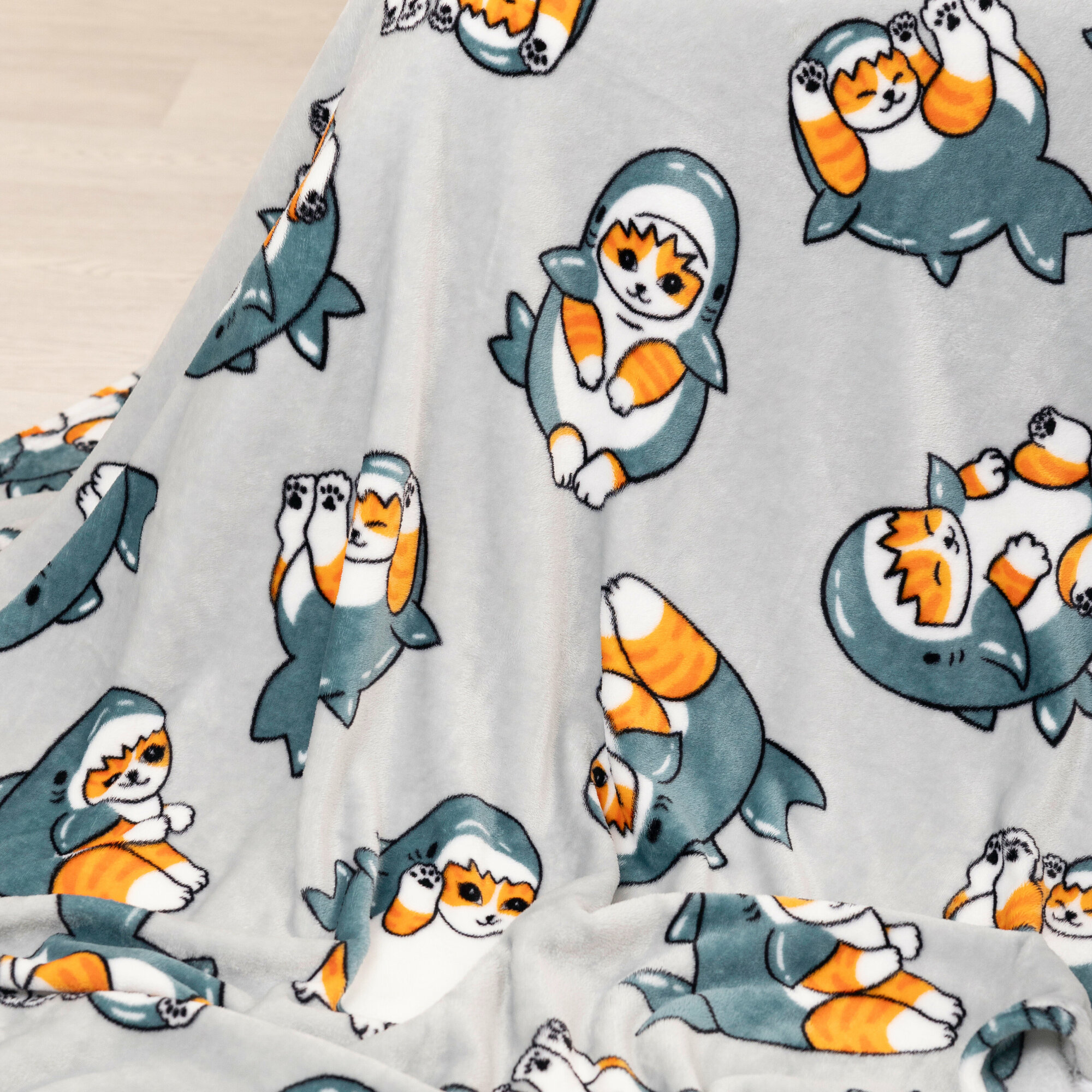 Купить Плед с рисунком кот-акула, микрофибра, 150х200 см, серый