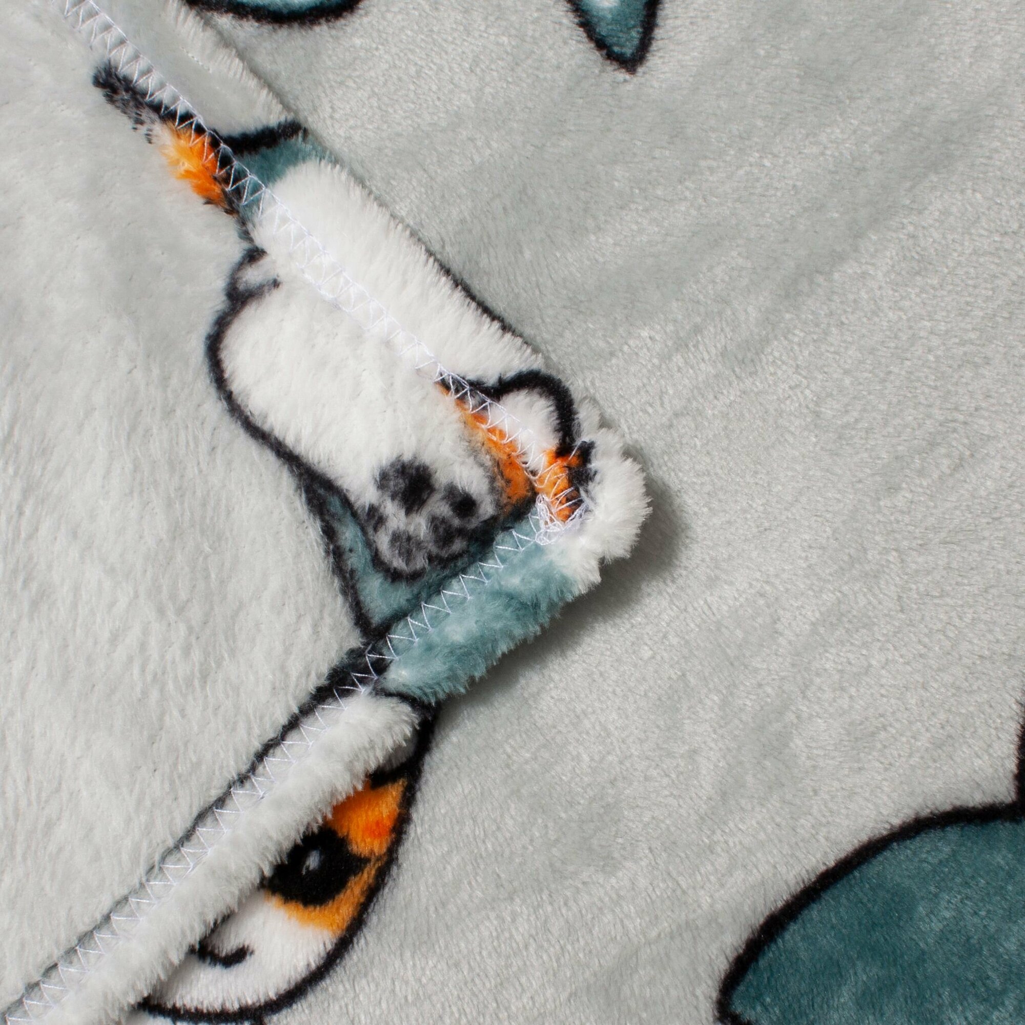 Детский плед из микрофибры, 100 х 150 см, рисунок собачки корги, светло-серый