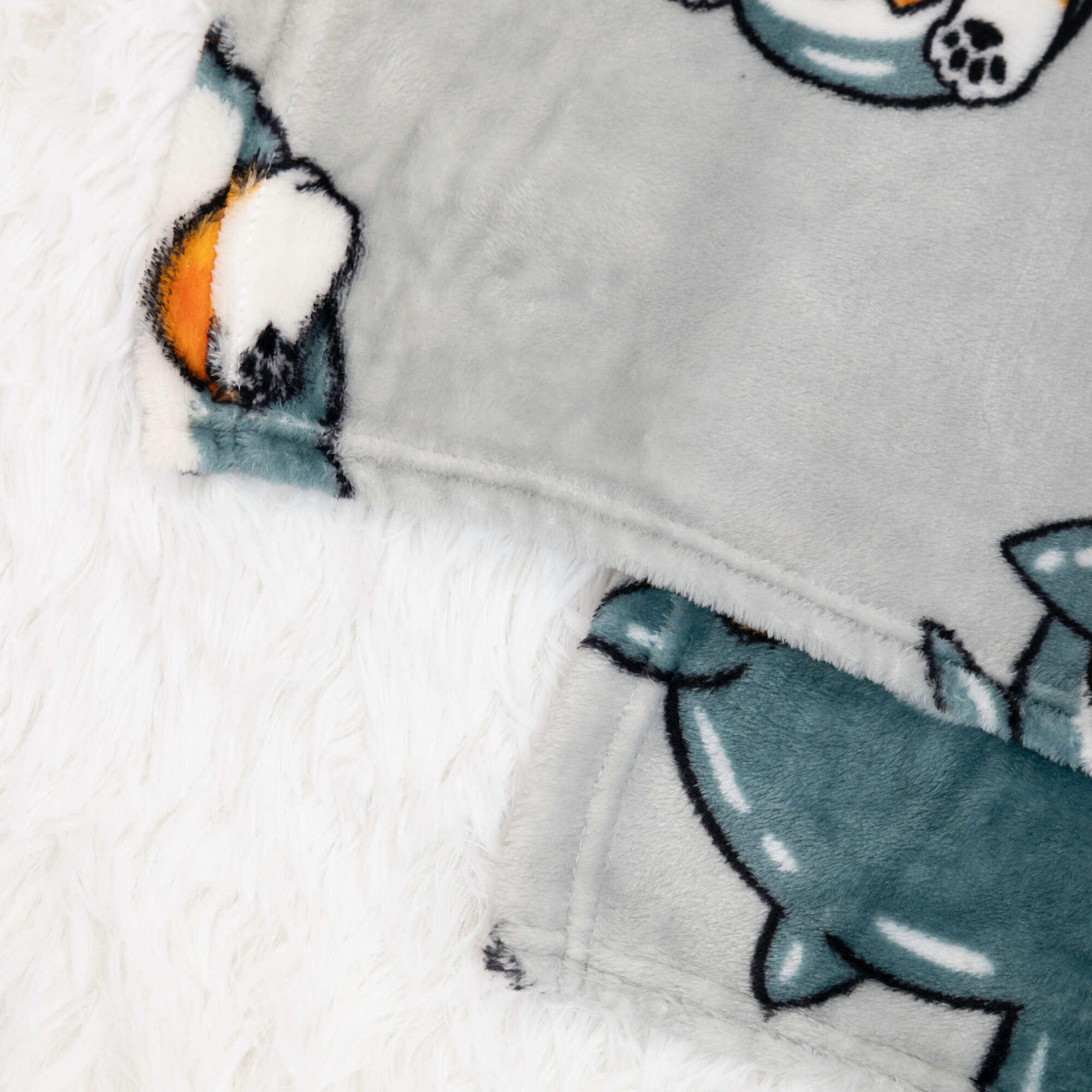 Детский плед из микрофибры с рисунком кот-акула, 150х200 см, серый