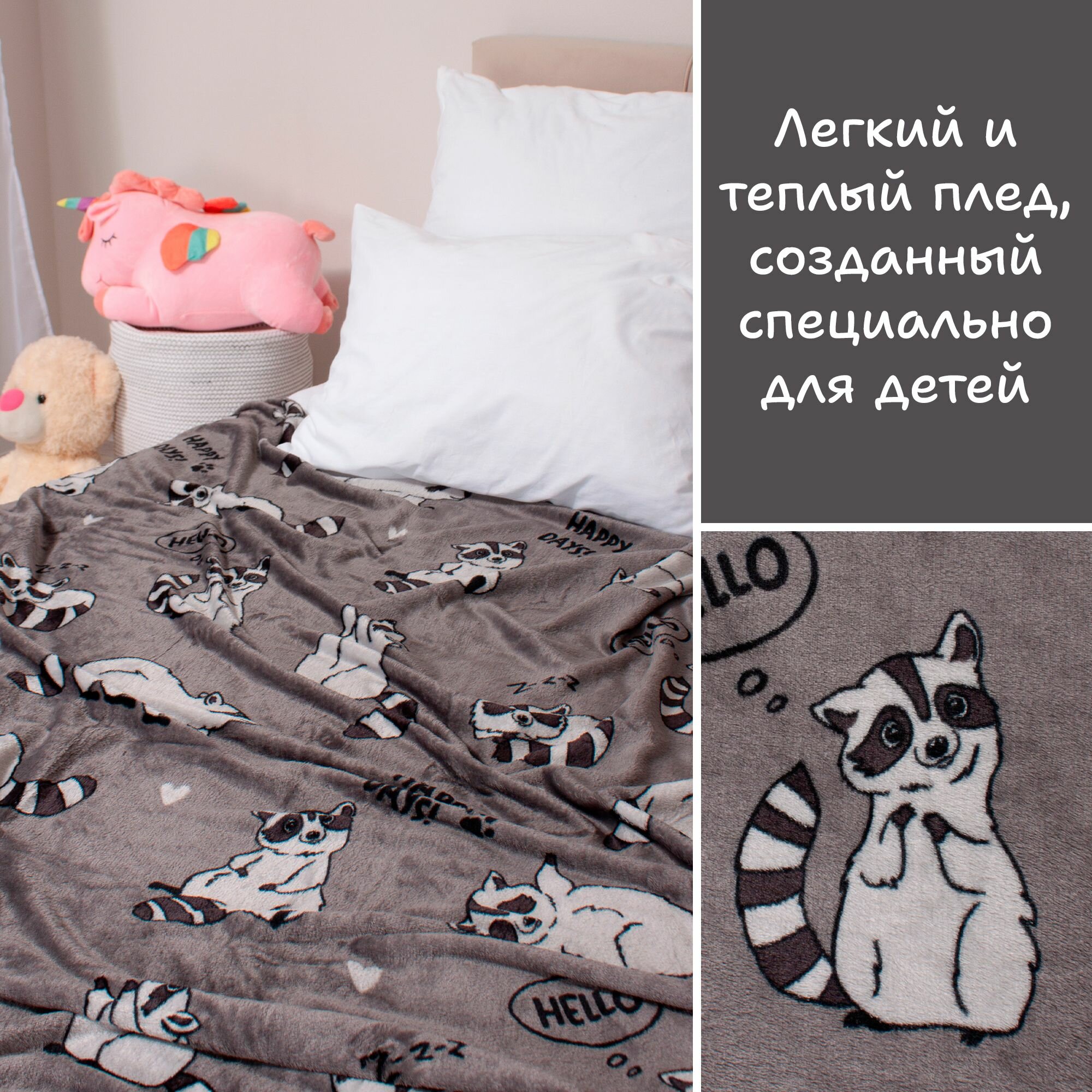 Купить Плед велсофт детский 150х200 см Casa Conforte Фестиваль Енот, темно-серый