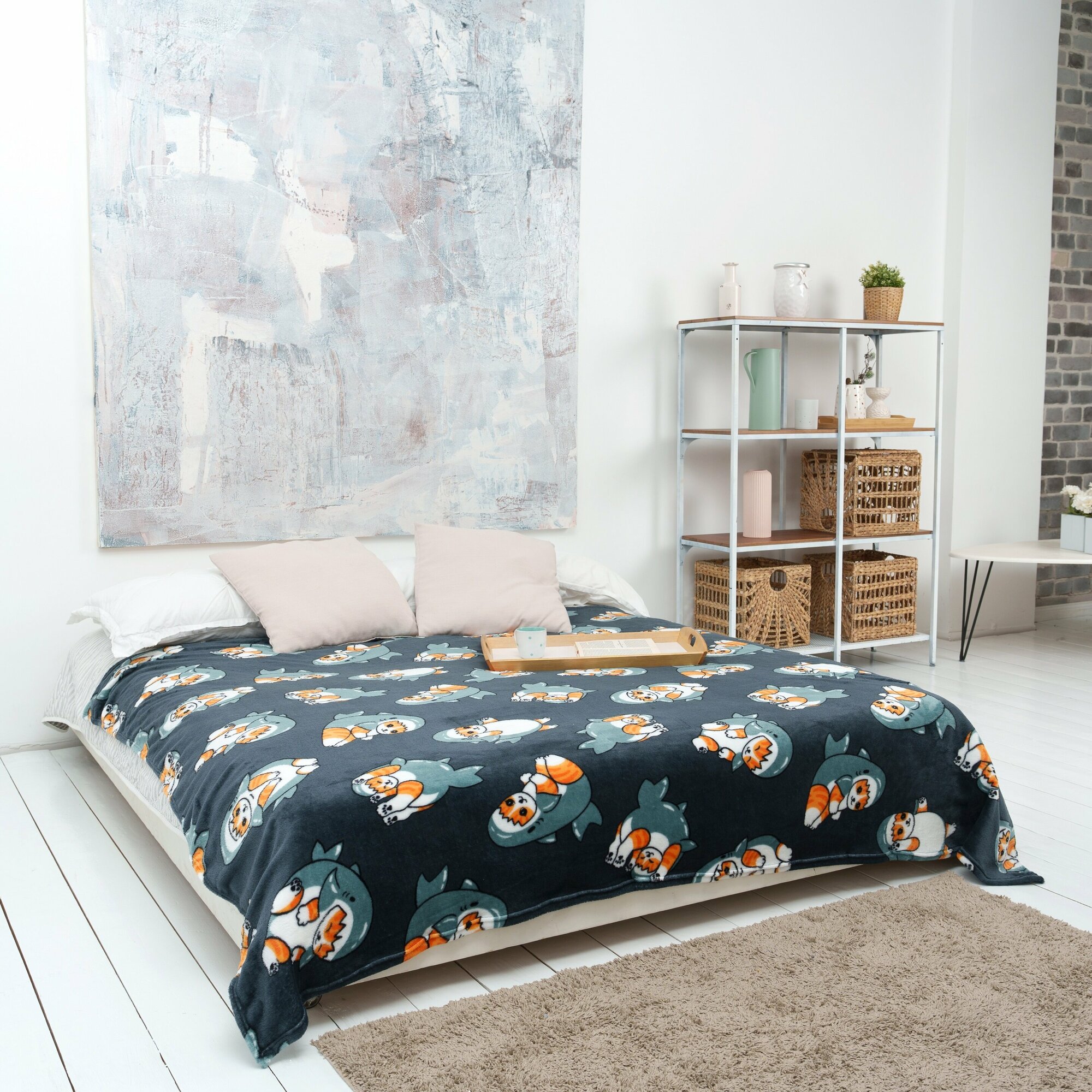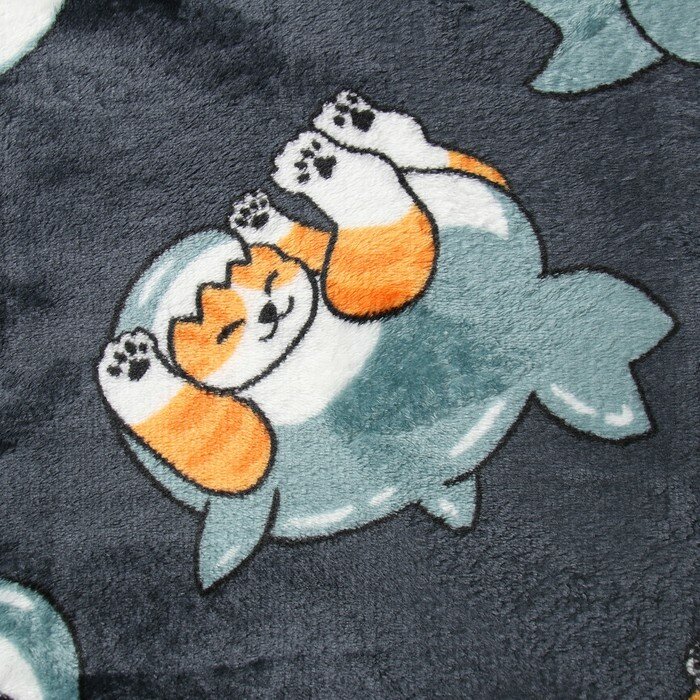 Плед с рисунком кот-акула, микрофибра, 150х200 см, серый