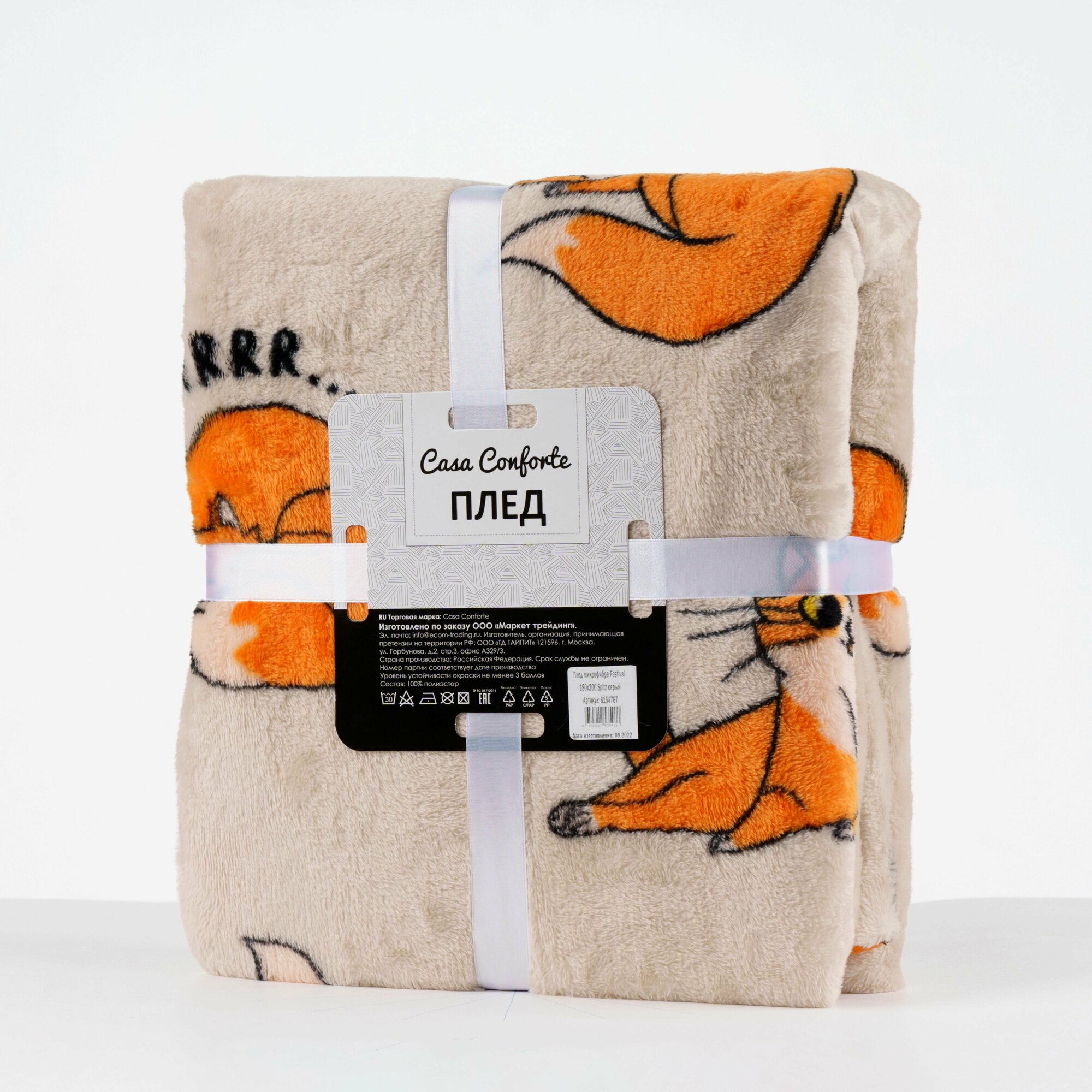 Casa Conforte Плед Festeval Red Cat 150х200см, серый, микрофибра 190г/м, пэ100%