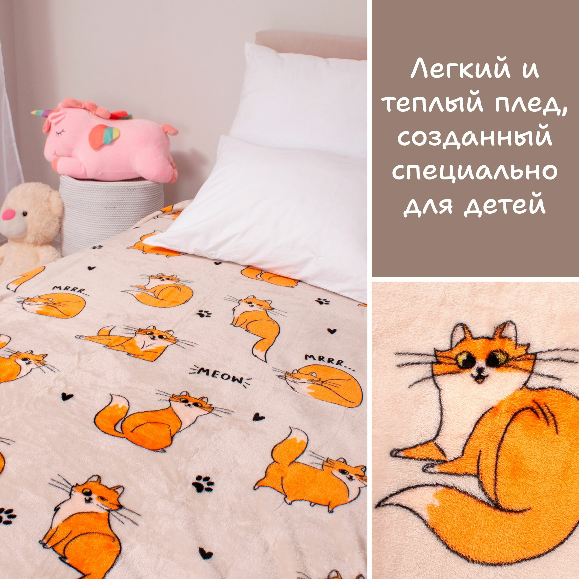 Купить Плед велсофт детский 150х200 см Casa Conforte Фестиваль Кот кремовый