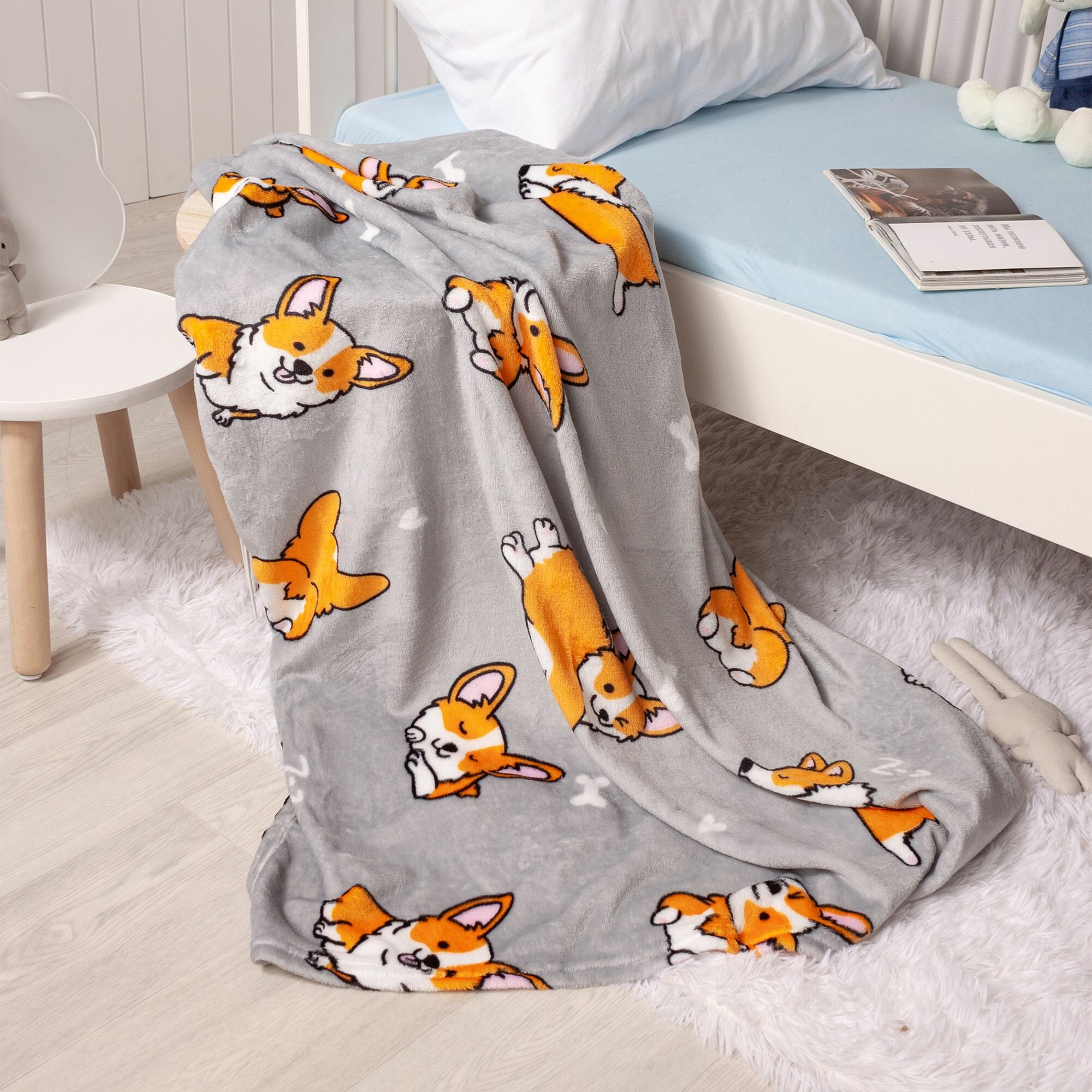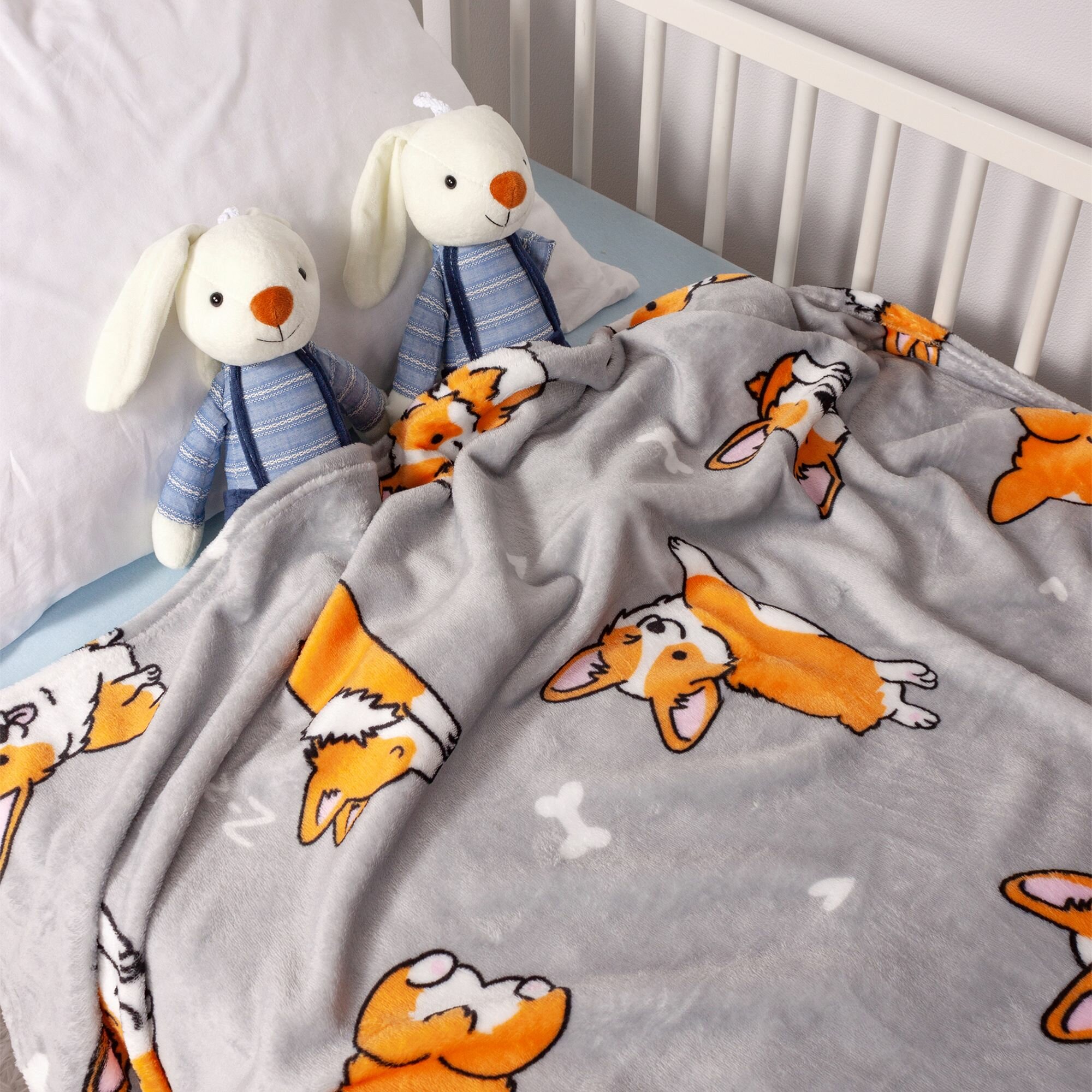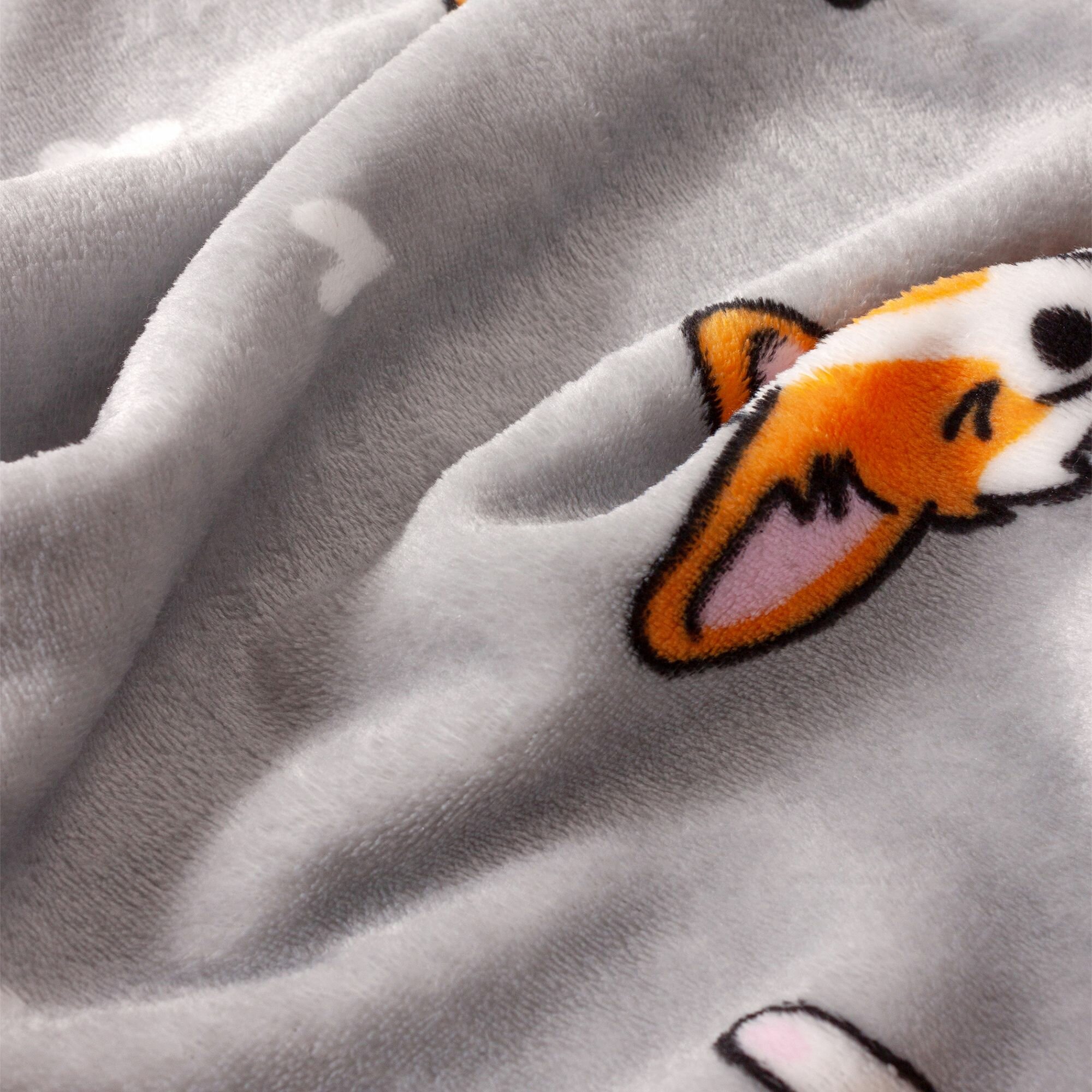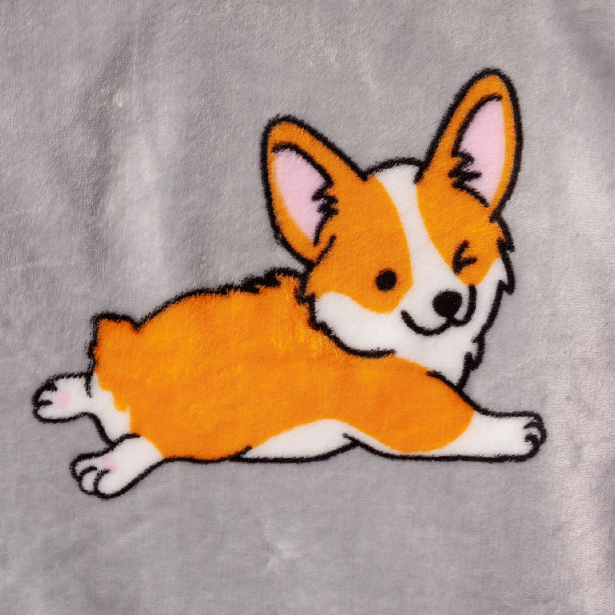 Купить Детский плед из микрофибры, 100 х 150 см, рисунок собачки корги, светло-серый