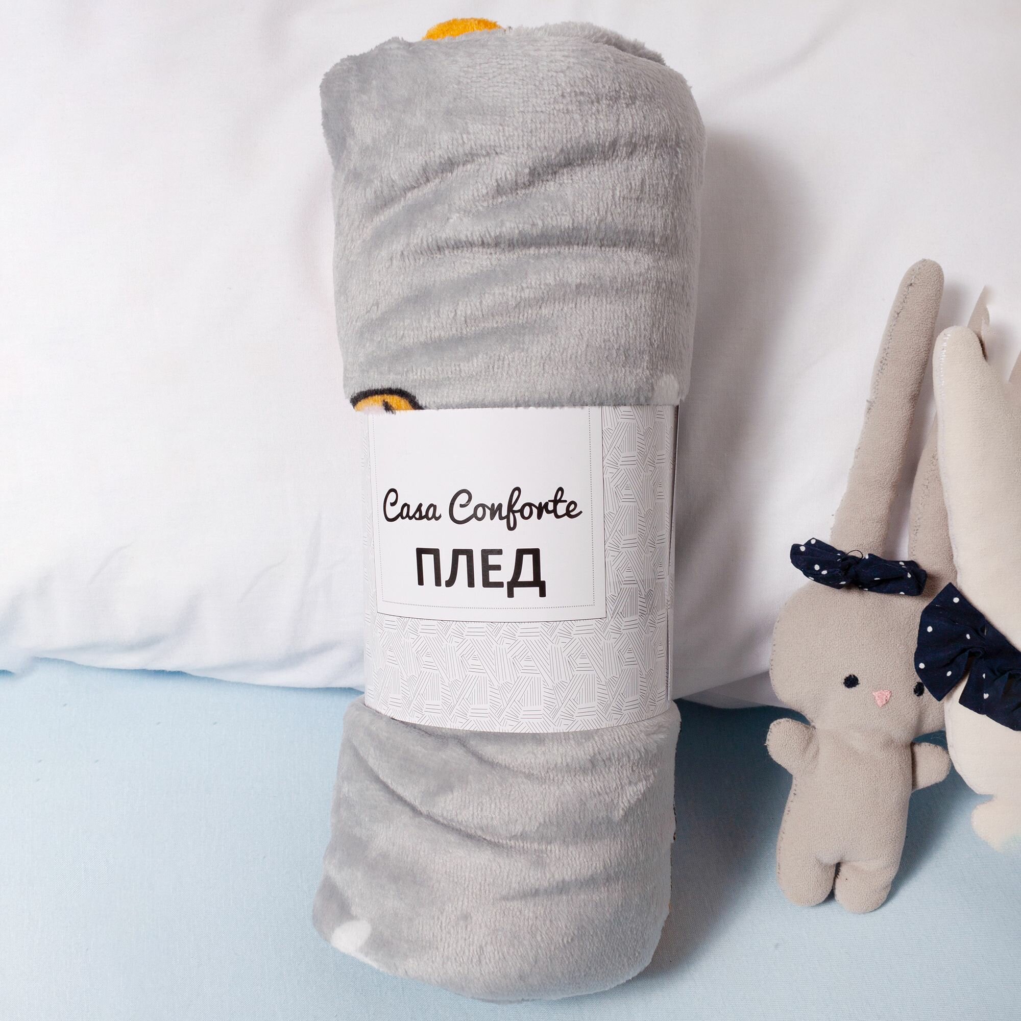 Плед велсофт детский 150х200 см Casa Conforte Фестиваль Енот, темно-серый
