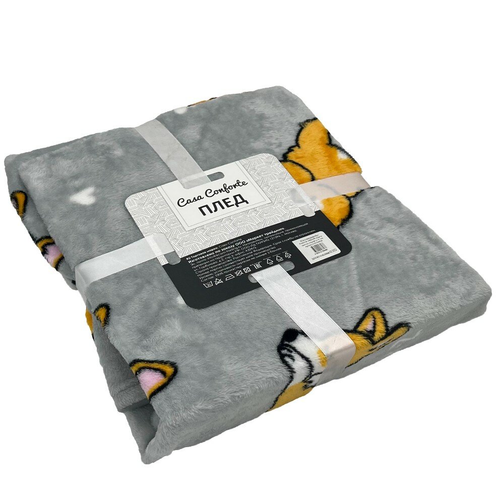 Плед велсофт детский 150х200 см Casa Conforte Фестиваль корги серый